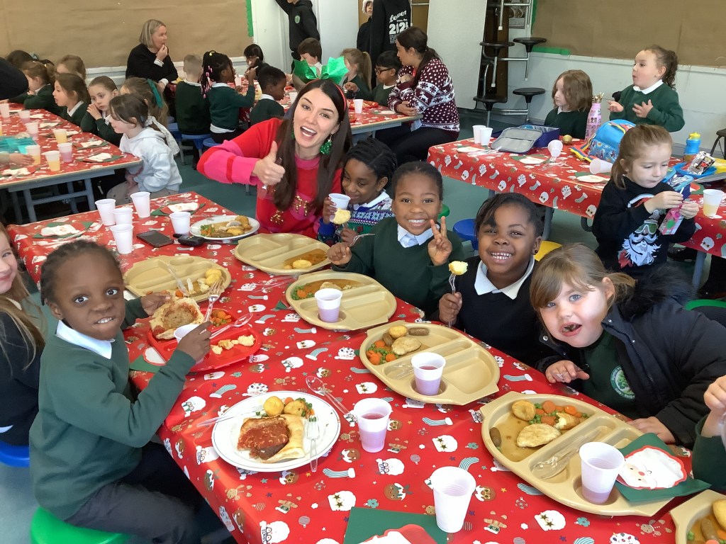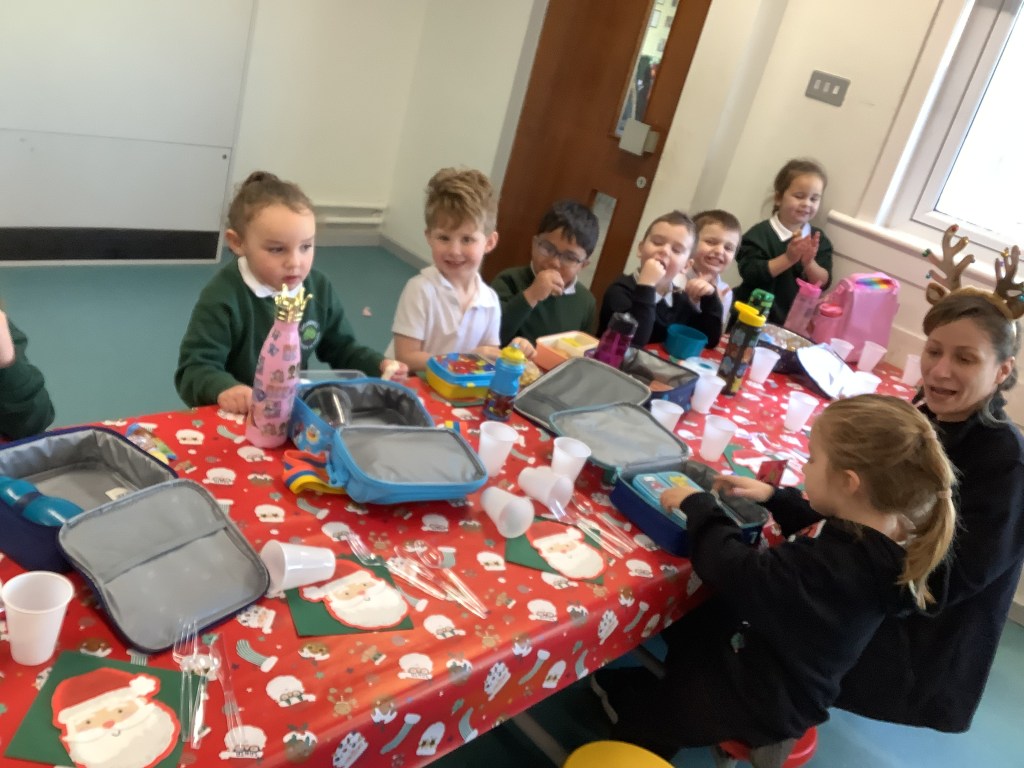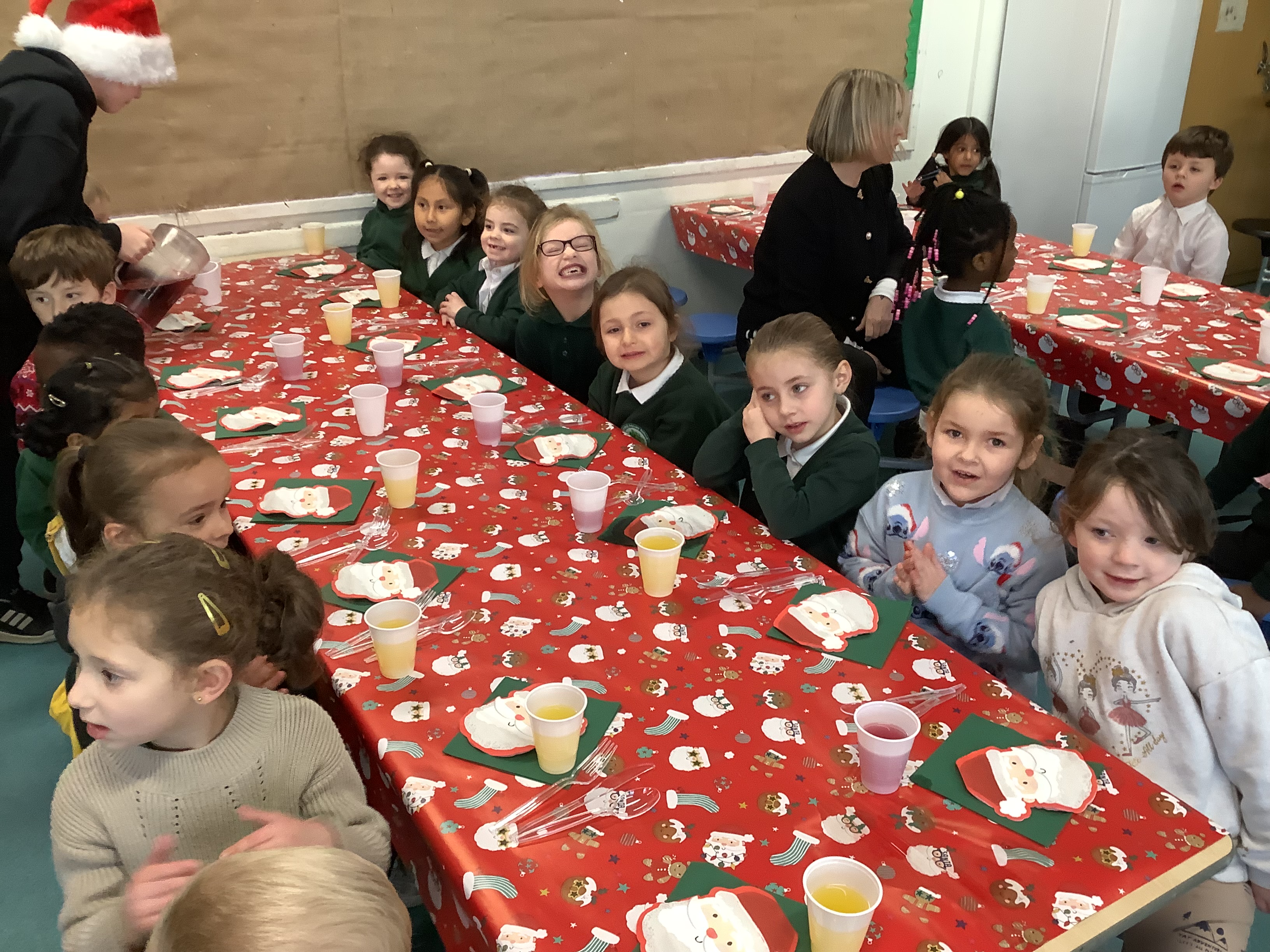 P1 enjoyed a delicious Christmas lunch with the nursery children. It was so exciting having lunch with the teachers and listening to Christmas songs.
