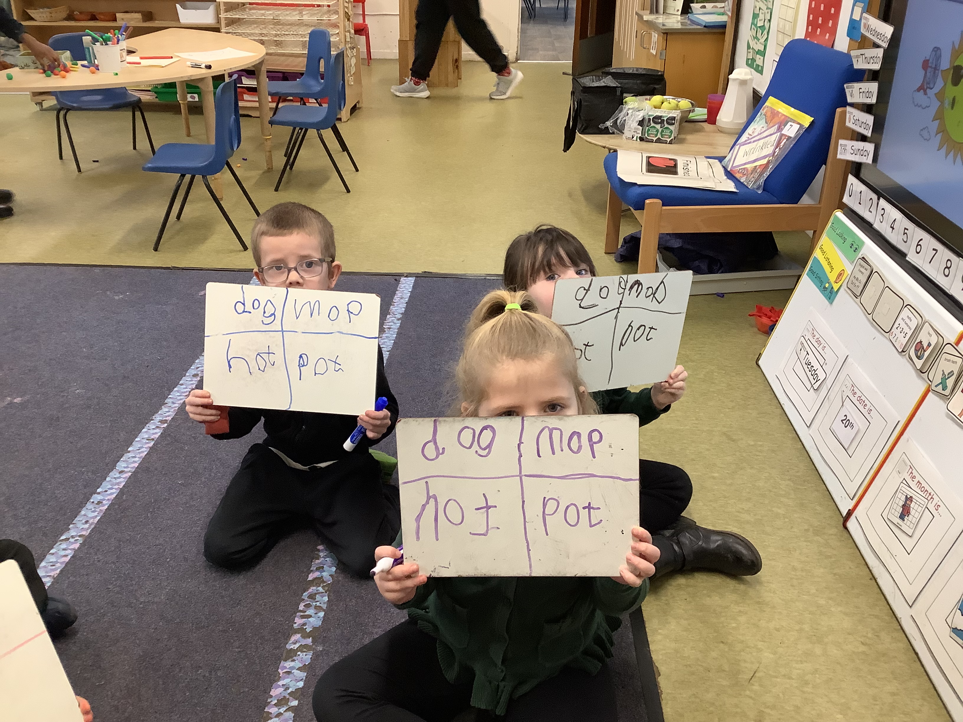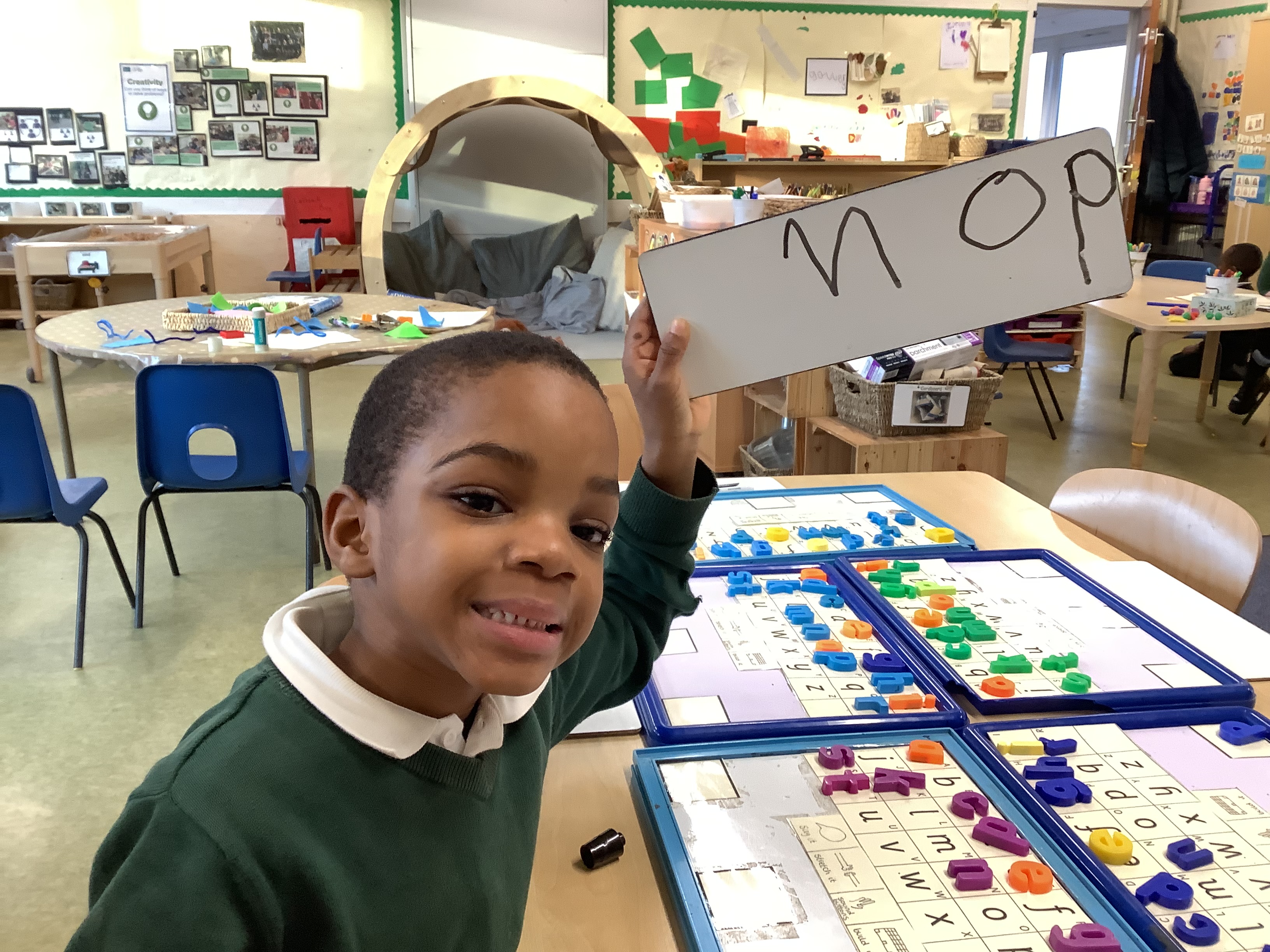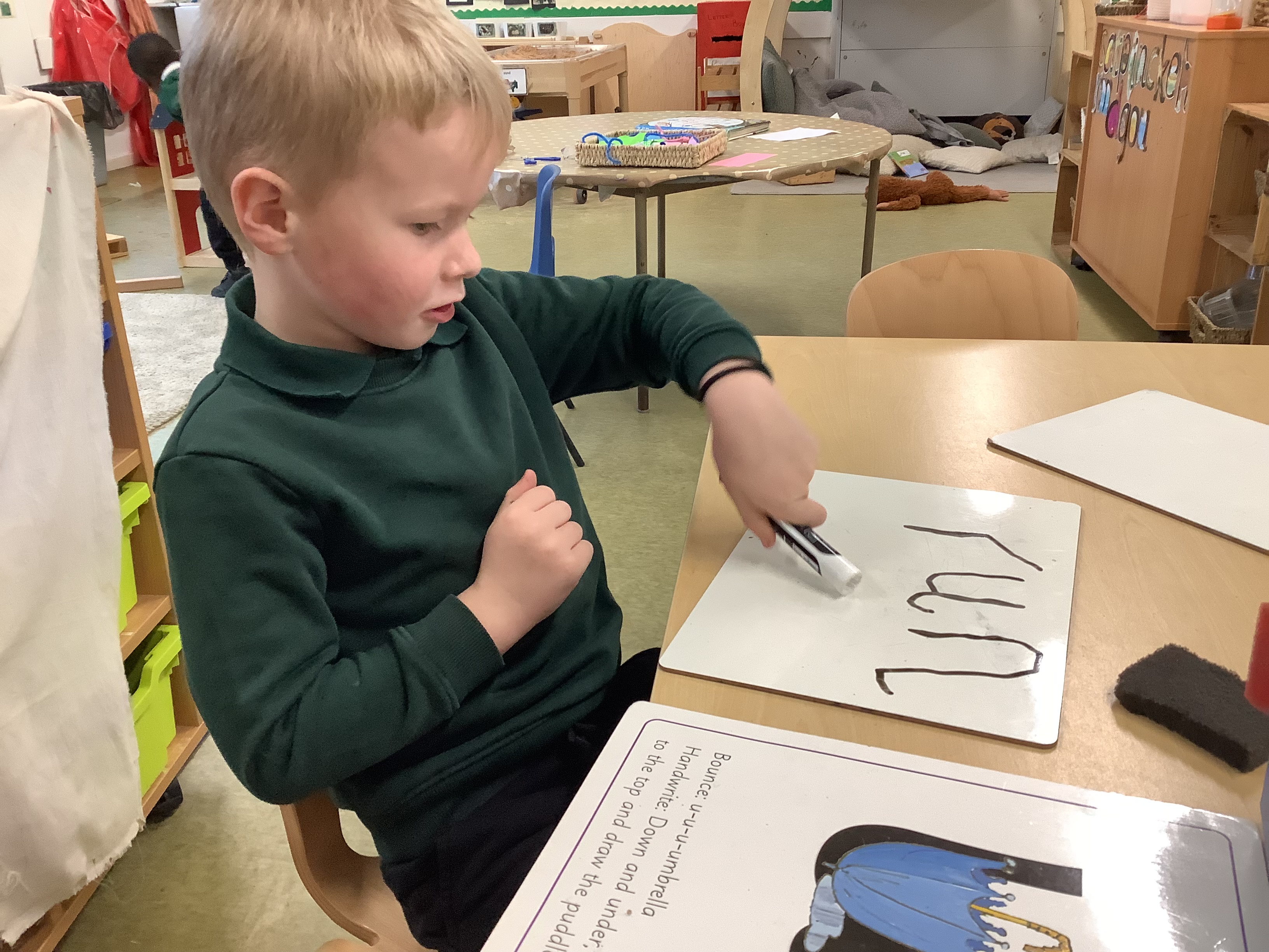 We have started to go to the teaching table twice a day to practice our sounds and numbers. Ask your child what sound they have been learning this week and if they can tell you any words that start with that sound! Miss Kramers is so proud of all their hard work.