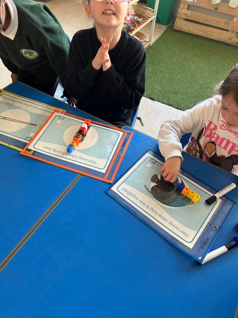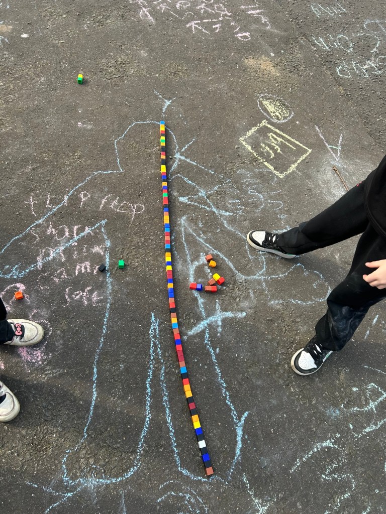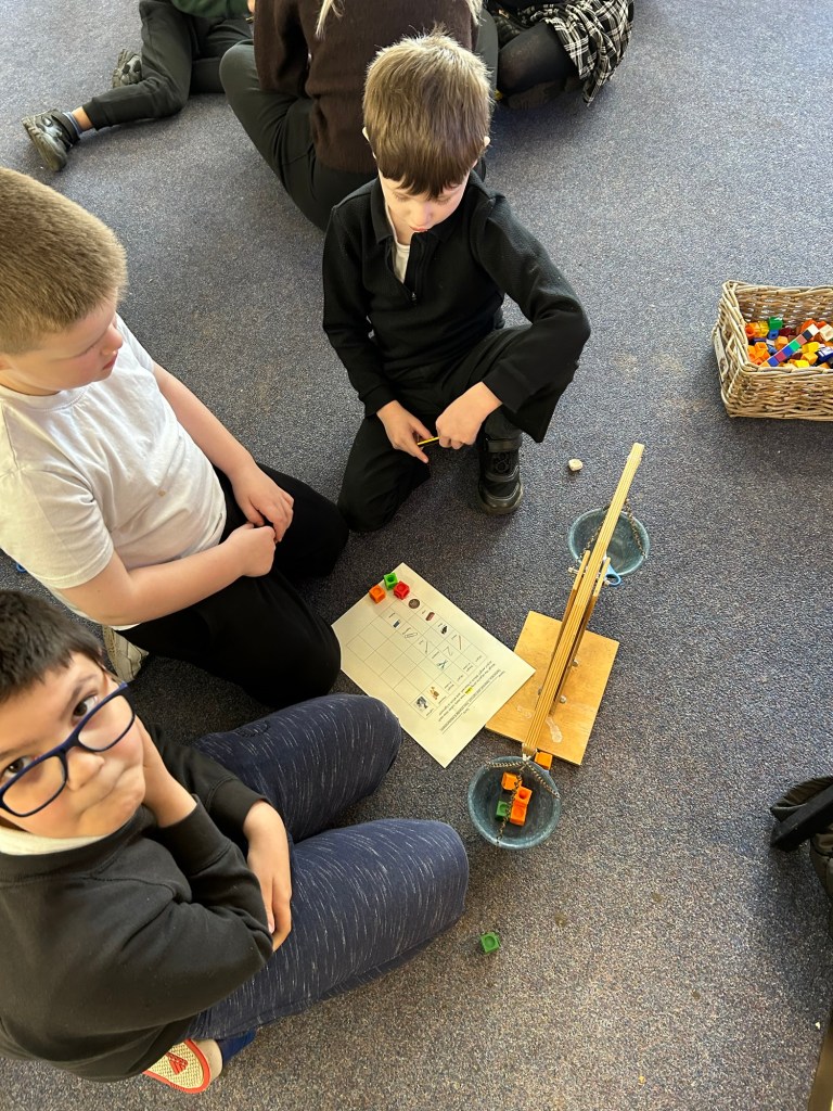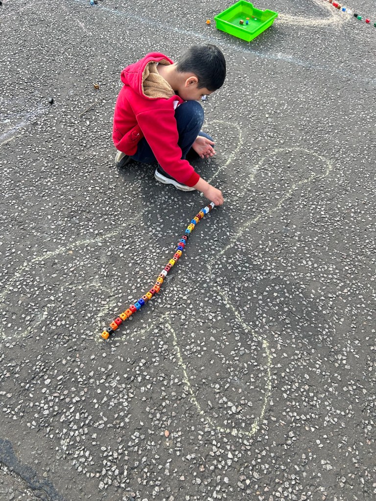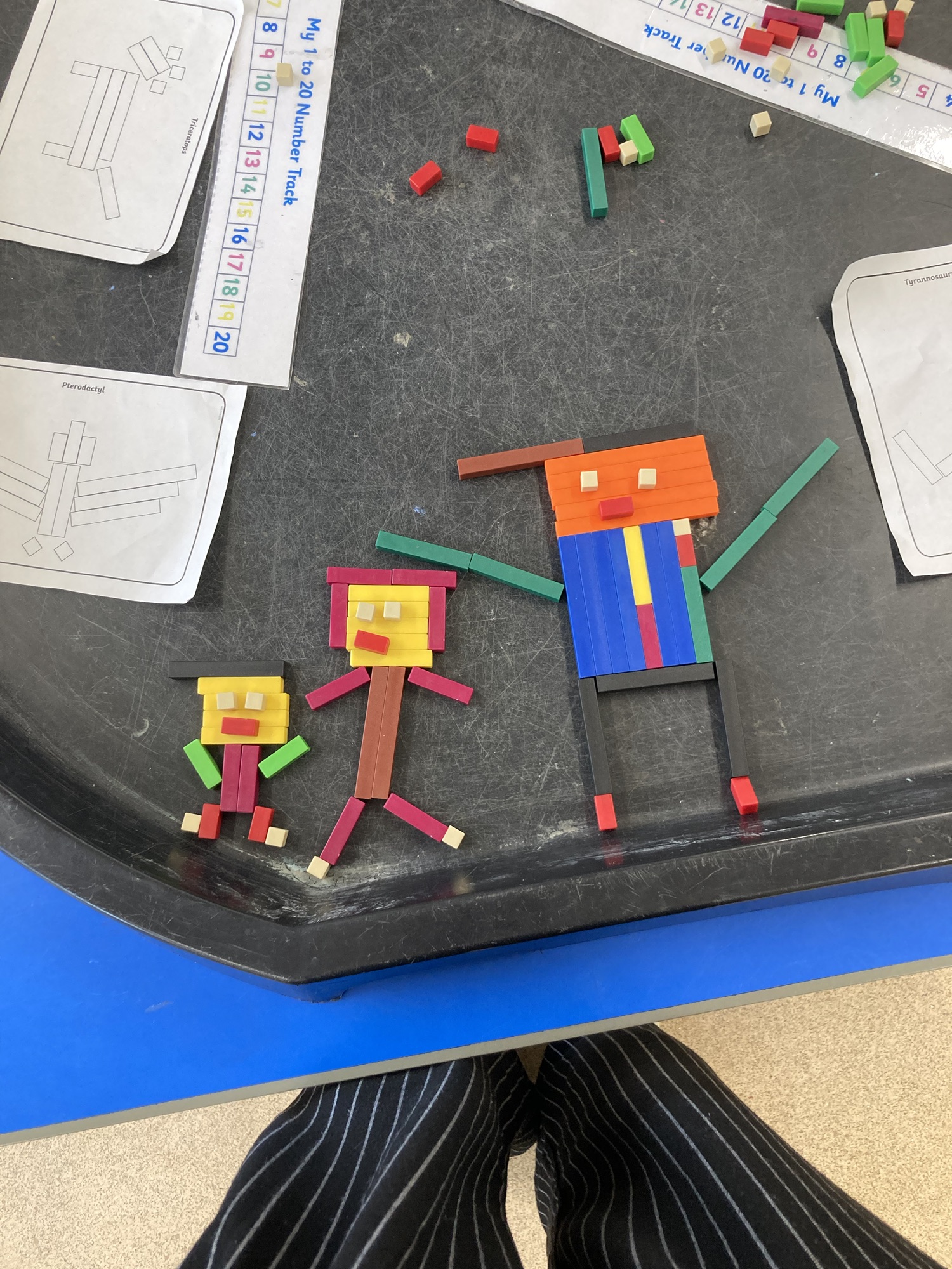We’ve been exploring measurement for maths over the last few weeks. So far we’ve been learning to weigh using cubes, grams and kilograms. We’ve began using non-standard units to measure length before we learn more about centimetres and metres.