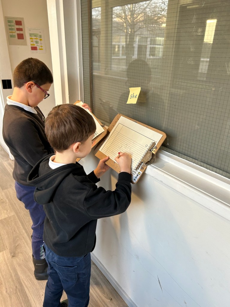 27.01.25 We’ve been enjoying doing phonics and tricky word scavenger hunts around the school each week! Last week we had to find the picture that matched our spelling words and this week we were identifying tricky words and writing them on our boards.