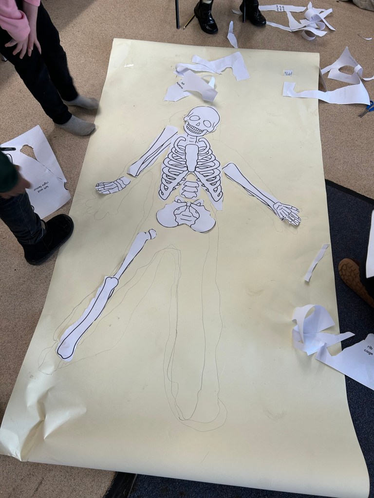 Our theme this term is our bodies. We’ve been learning about the function of the skeleton. We can name some bones found in our bodies. We will be moving on to look at the role of organs in our bodies and how to look after ourselves.