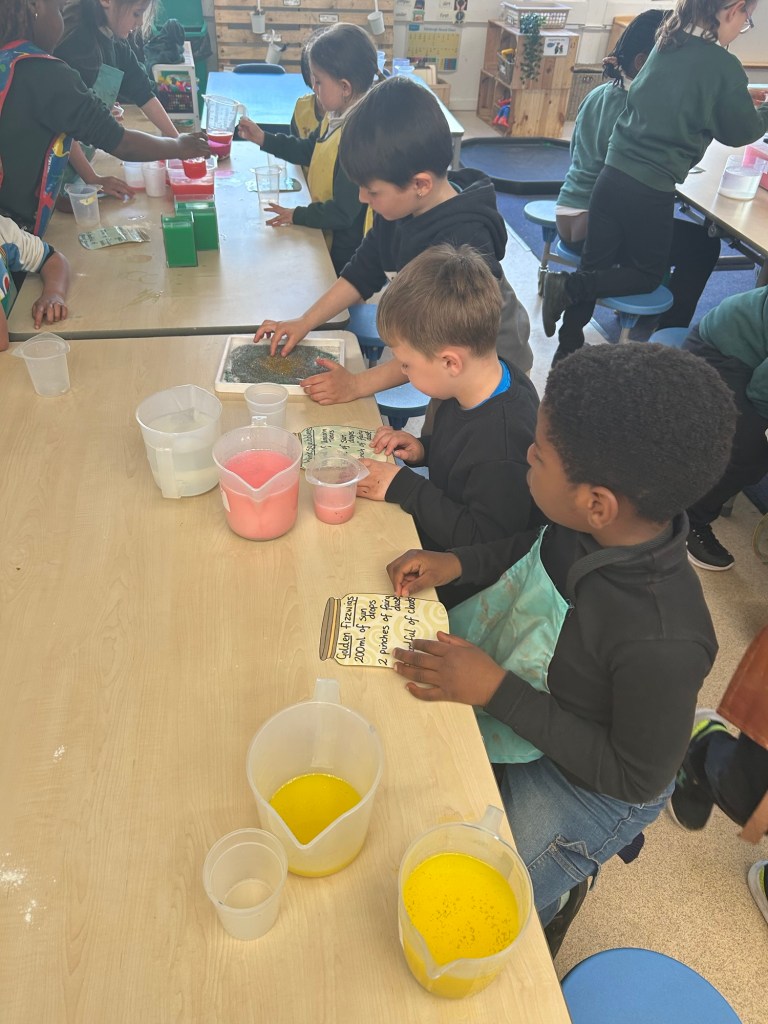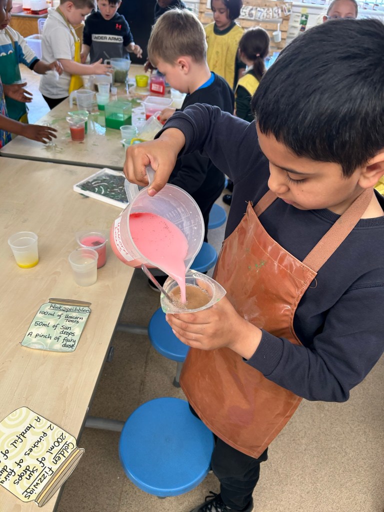 We linked our class novel the BFG with our Maths measure topic. We followed a recipe to mix and make dreams using our knowledge of miletres and litres.