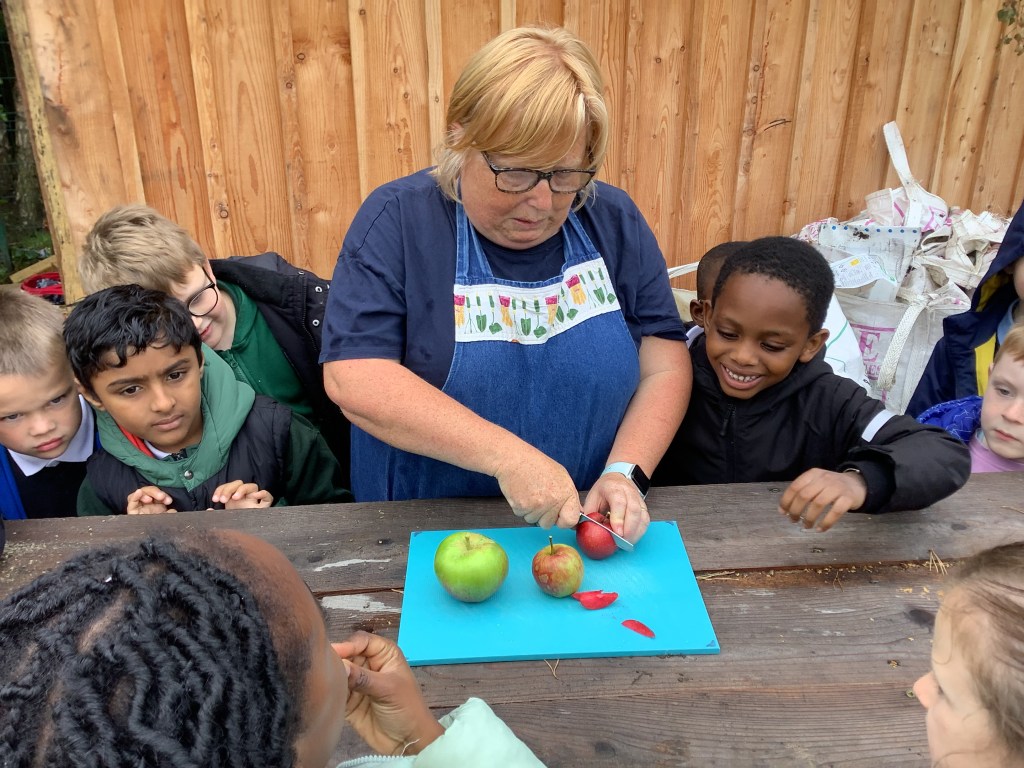 - 6. We enjoyed a trip to the community garden where Shona gave us different varieties of apple to taste and we explored the different foods growing in the garden