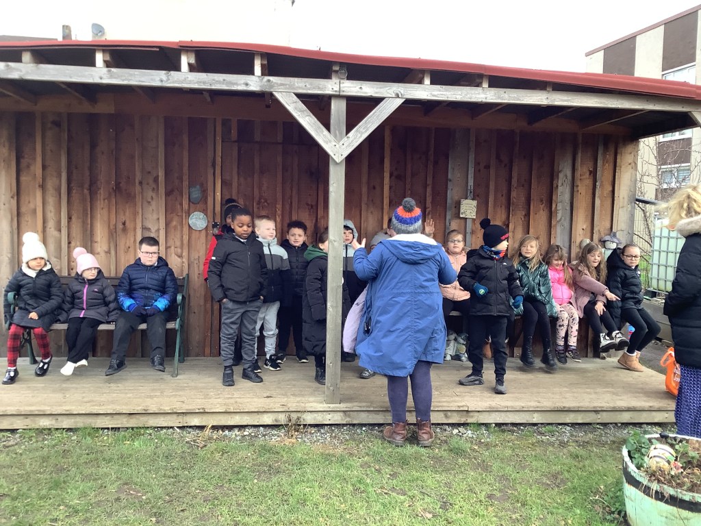 …visited the community garden to see how it has changed since our last visit in the autumn, practised how to sound out words correctly, developed our maths skills, performed the Circassian Circle for our parents/carers, had fun doing a variety of Burns themed activities and played games at our pyjama party as a reward for filling our marble jar!