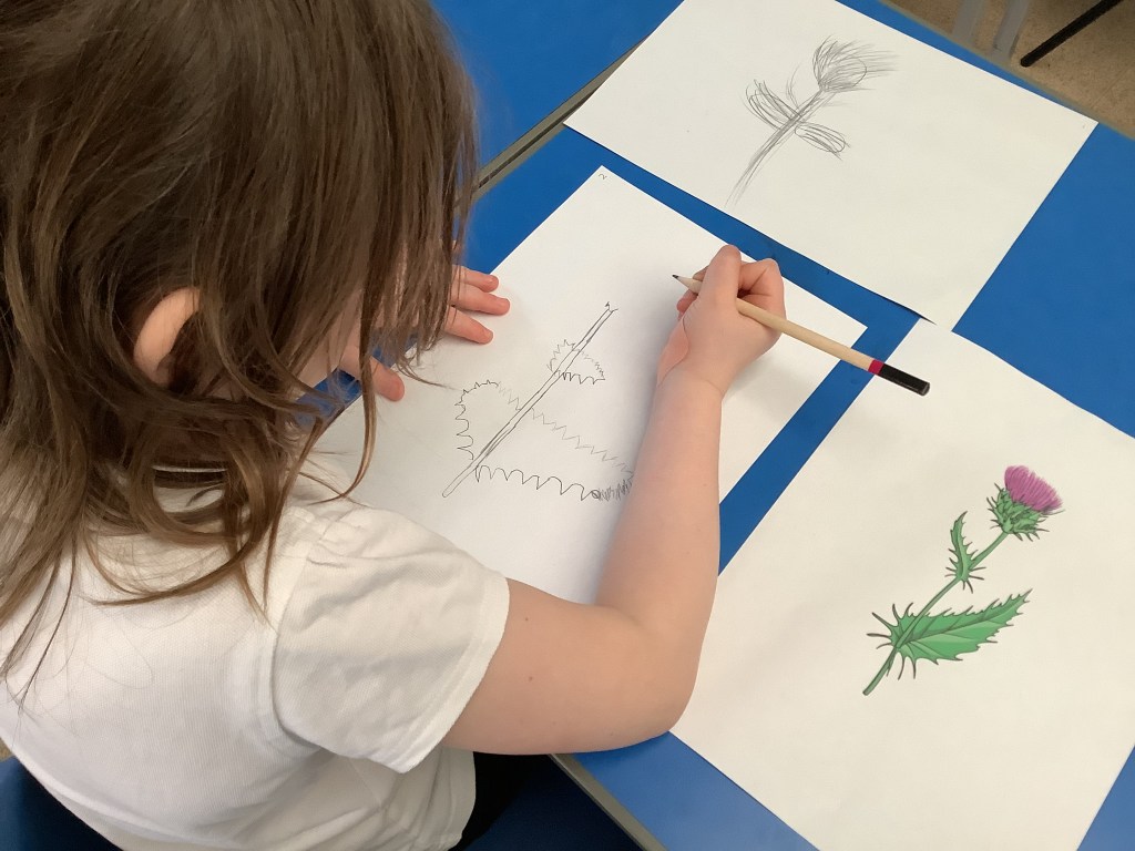 We have been developing our addition skills and learning about ‘fact families’, making predictions and learning to sound out words correctly in our reading groups, practising our spelling rules and continuing to develop our racket skills in P.E. We have also been developing our art skills by learning to draw a thistle as part of our Robert Burns topic and had our weekly visit from Big Noise.