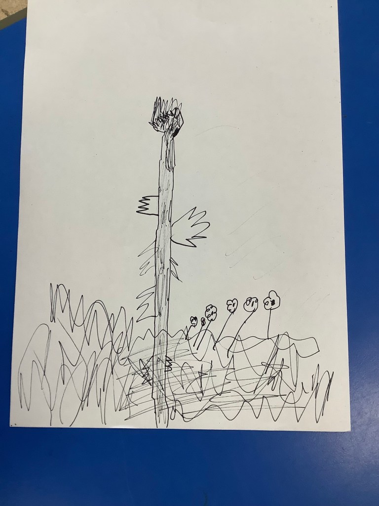 - Using our imaginations to create art work using a stick – thank you to all the parents who joined us for this lesson!