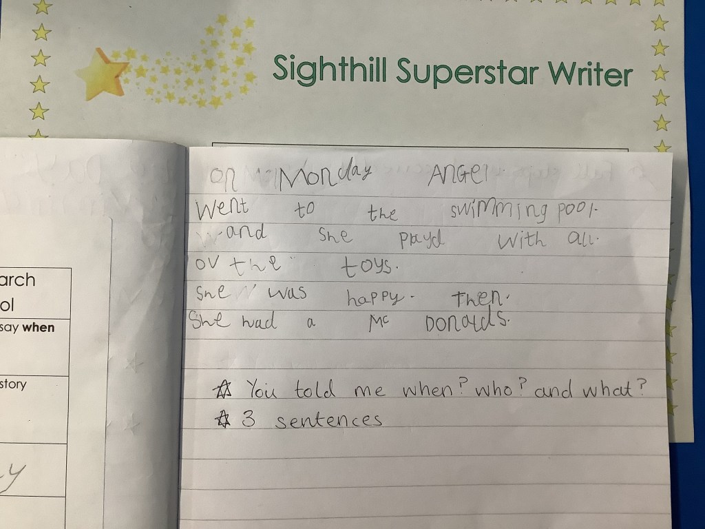 We made hats to wear for our performance where we shared our learning about Robert Burns and sang ‘You Cannae Shove Yer Granny Aff a Bus’. This week we have also been developing our writing skills and we wrote a story about going to the swimming pool. We have been practising our addition skills, adding 3 numbers together and sharing our strategies with our classmates. We have also been continuing to learn how to develop our resilience and about Ramadan.
