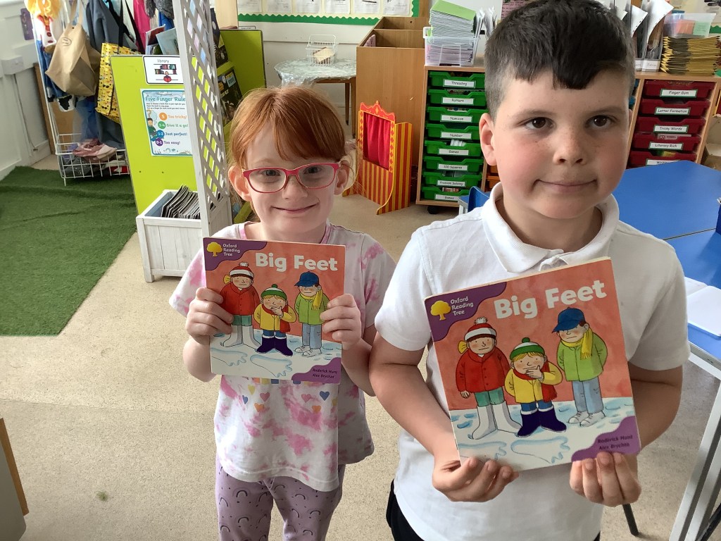 - continuing to develop our reading skills – making predictions about a book using the title and front cover, learning to tell the difference between fiction and non-fiction texts and learning to sound out words as we read