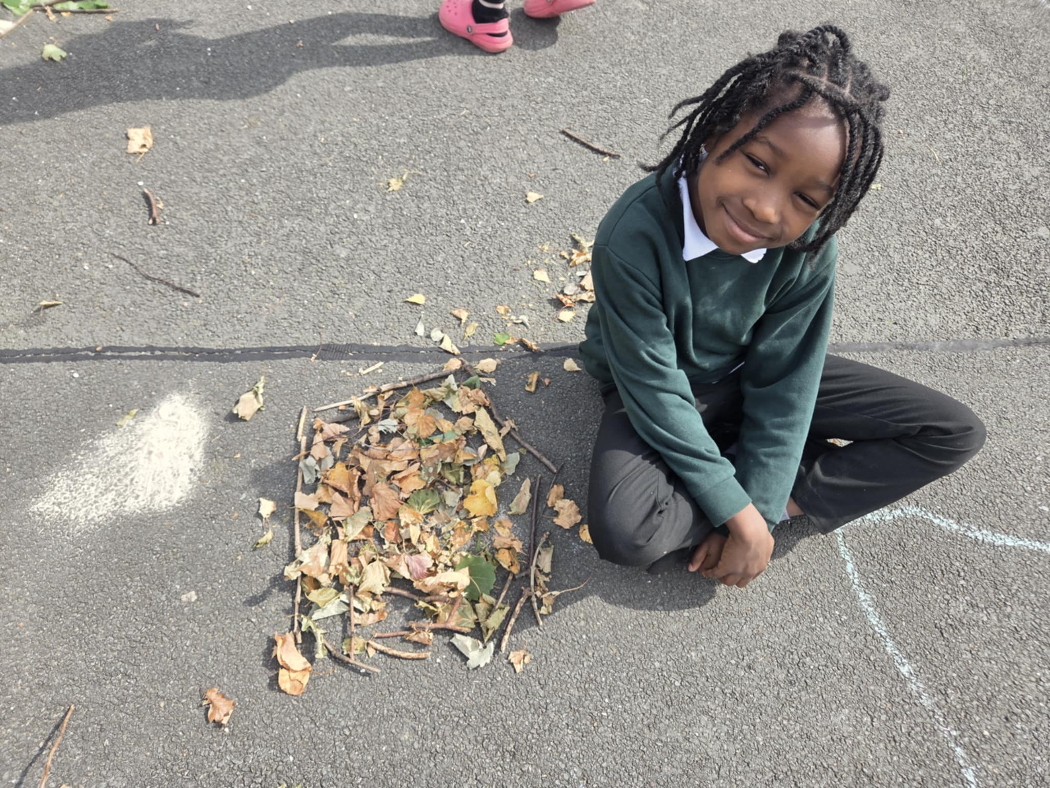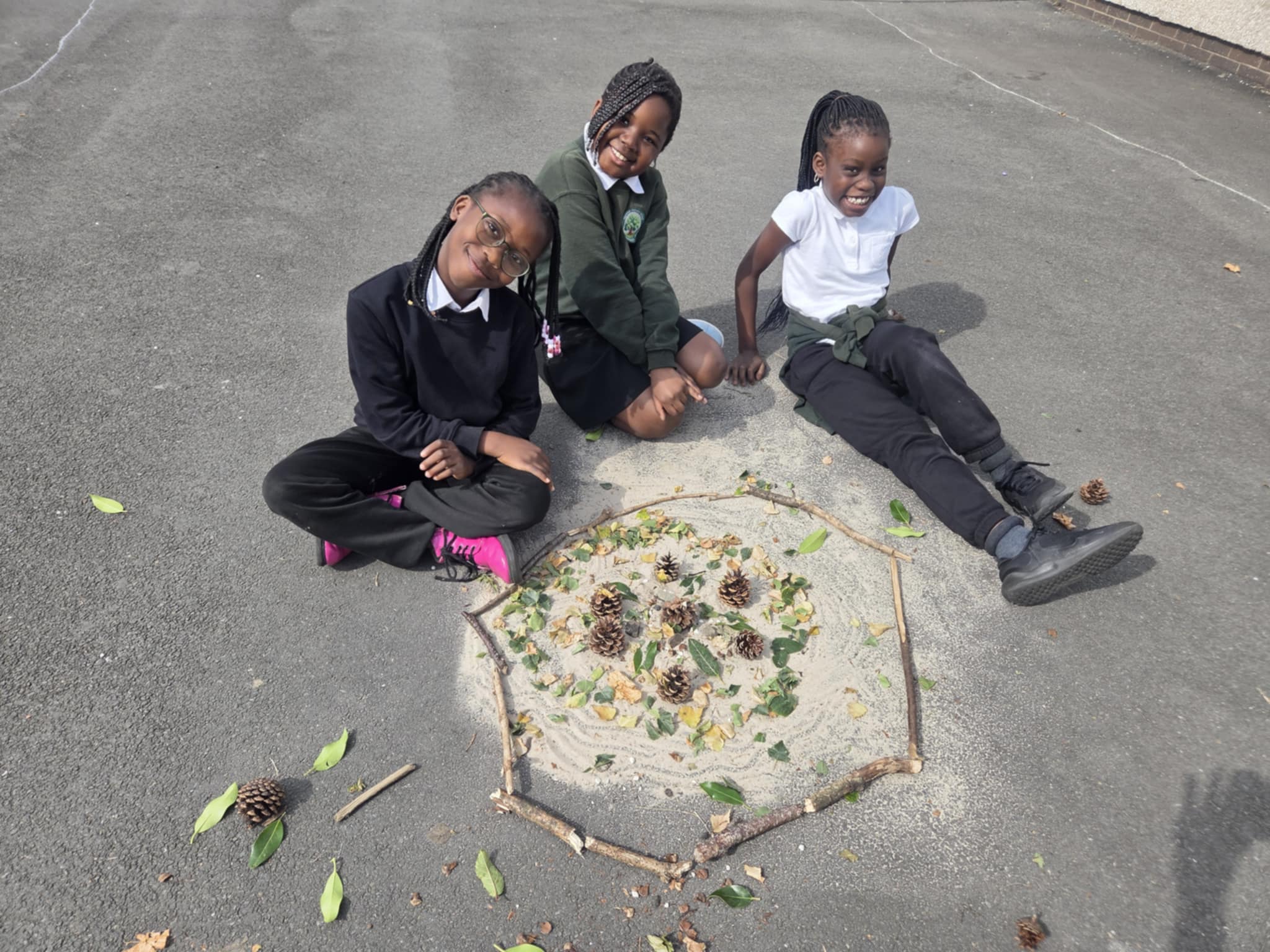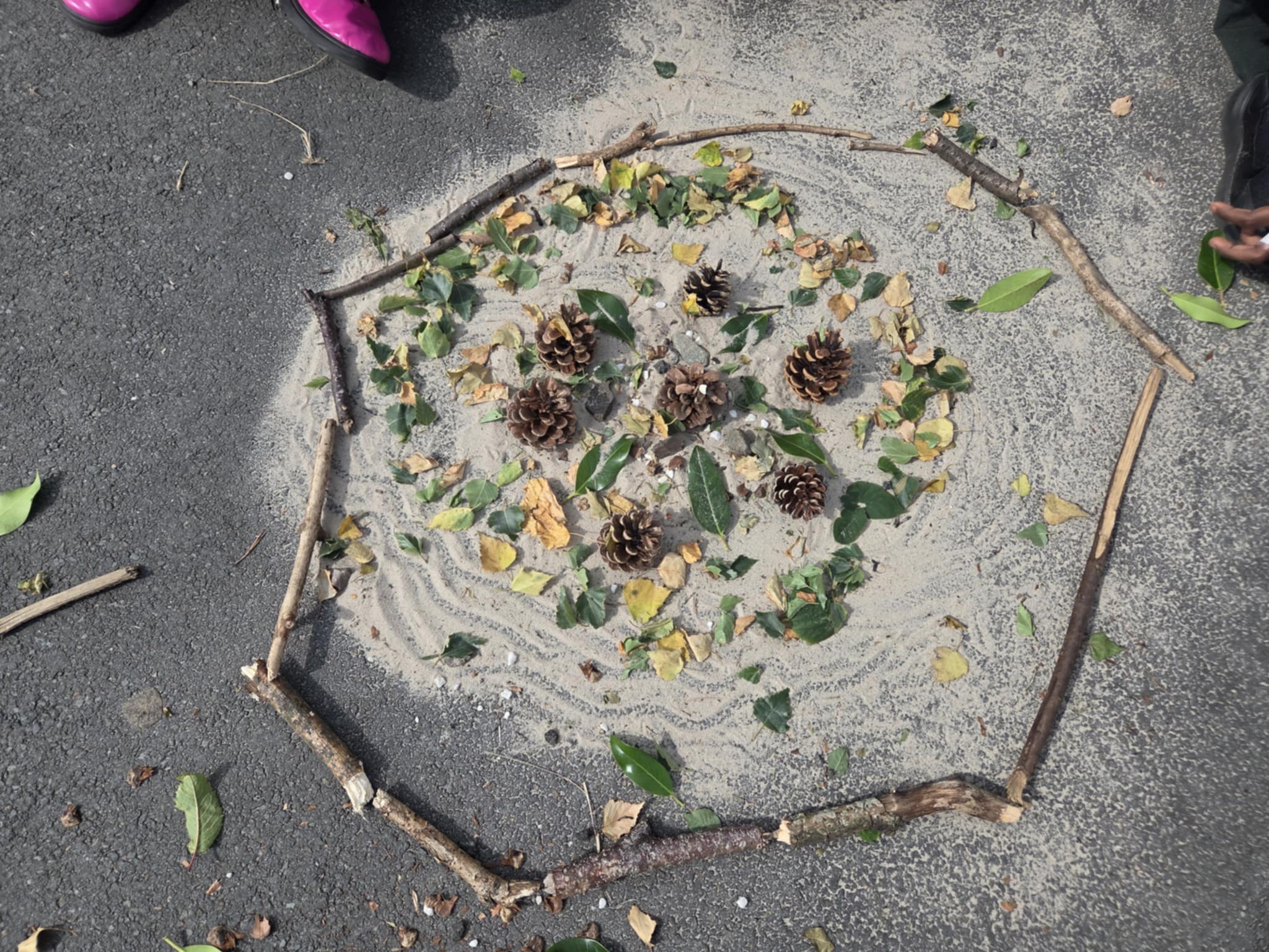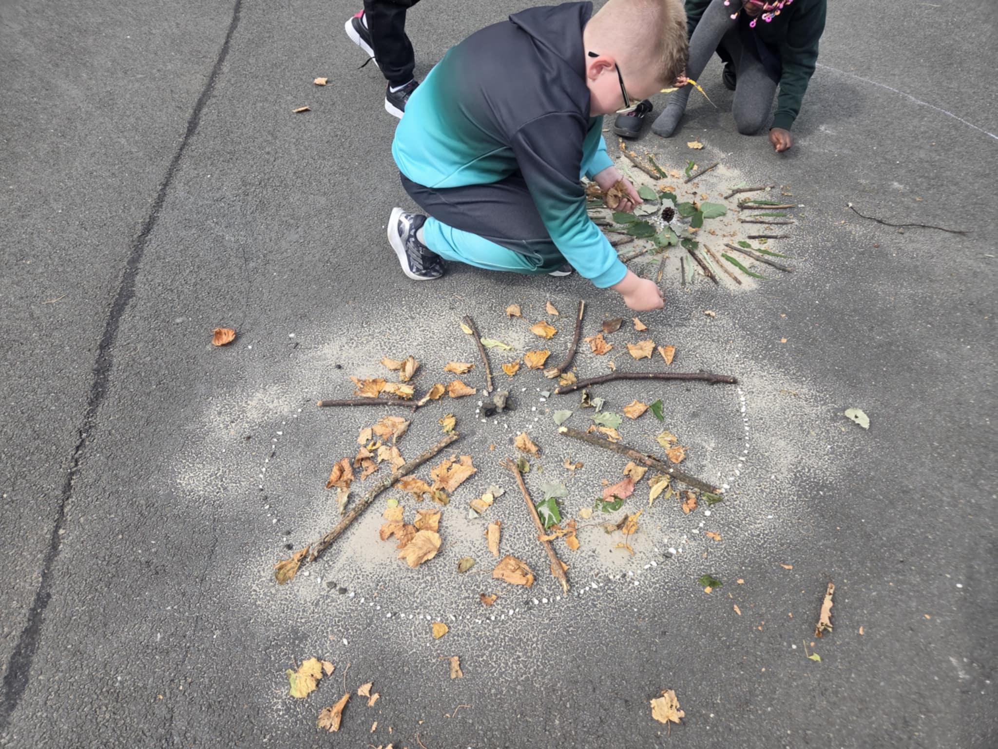 We are enjoying an art topic about different artists that use nature within their work. Andy Goldsworthy is famous for his extraordinary work with natural materials. In a few weeks we will be visiting his exhibition in Edinburgh and we are very excited to see his work in real life. So, until then, we had a go at making our our art inspired by his work. We focused on swirls, circles, patterns, colour and different materials that we found in the playground.