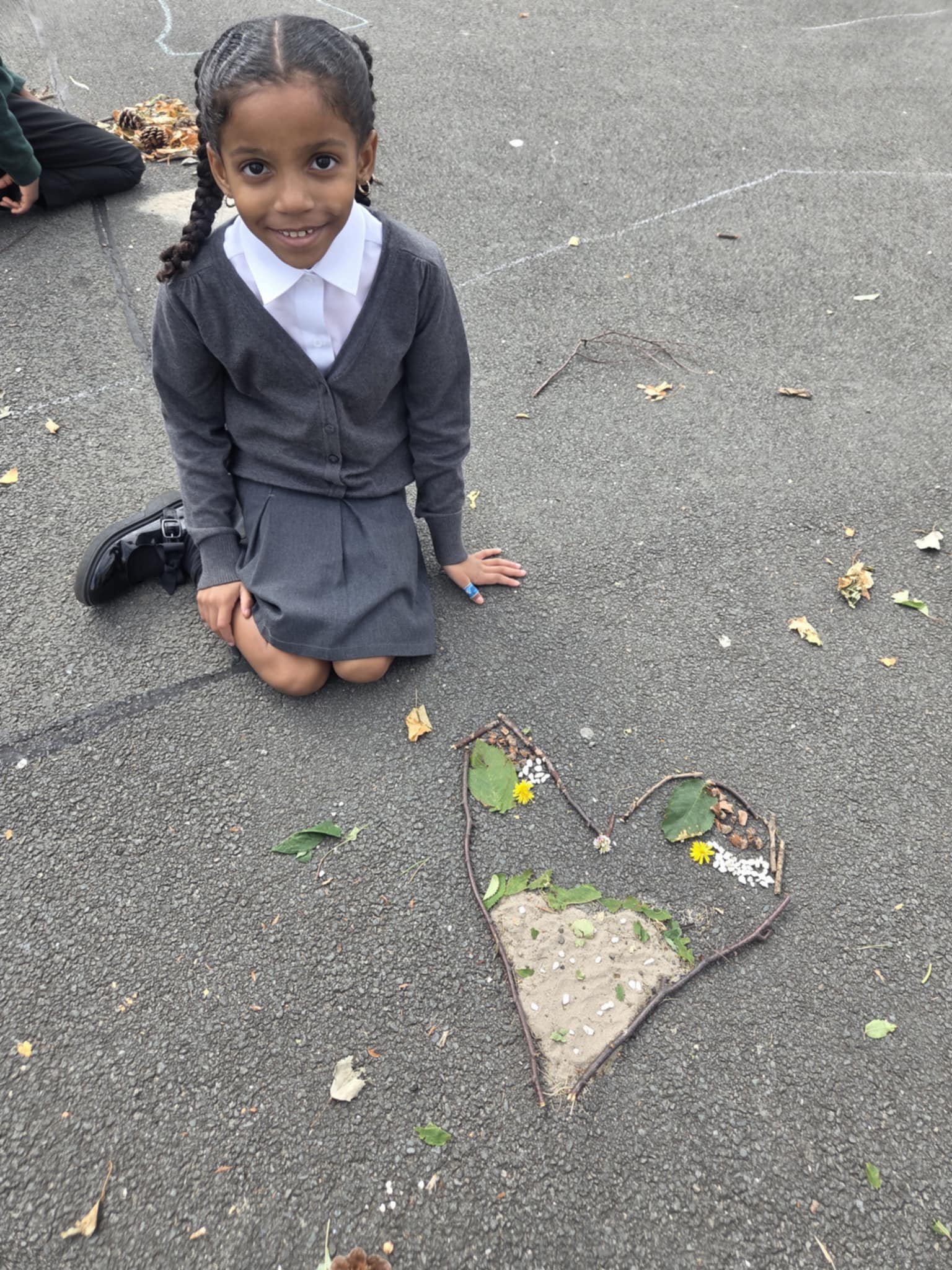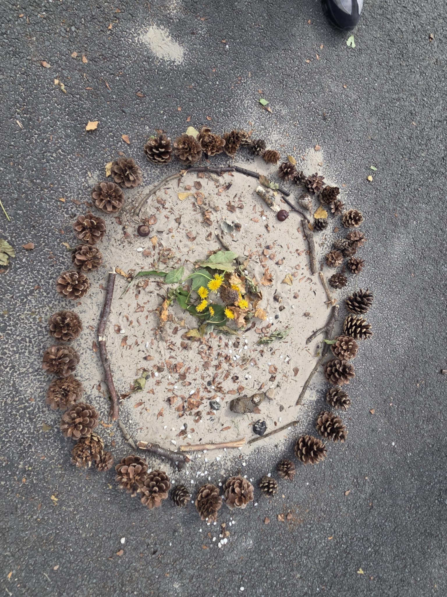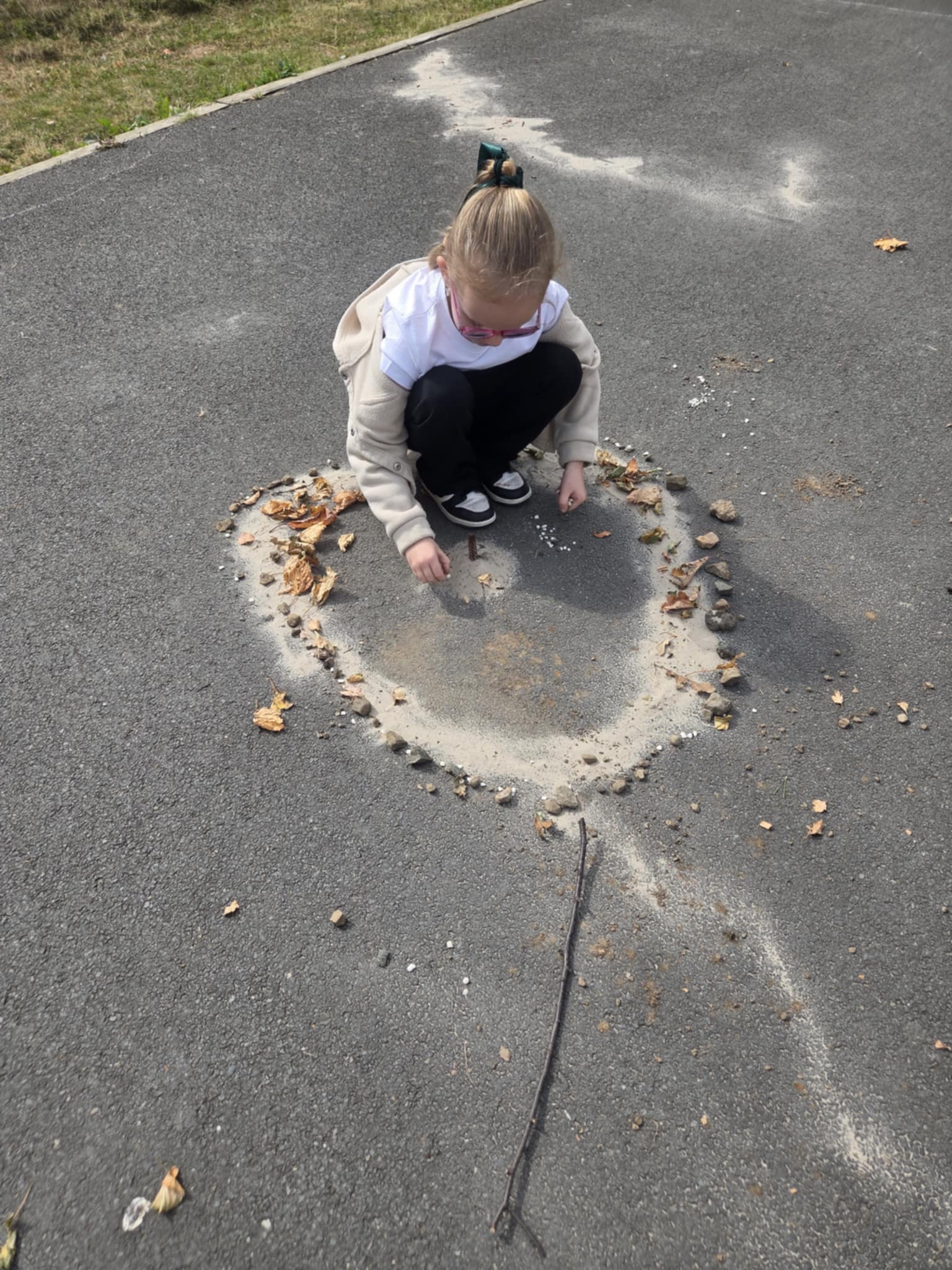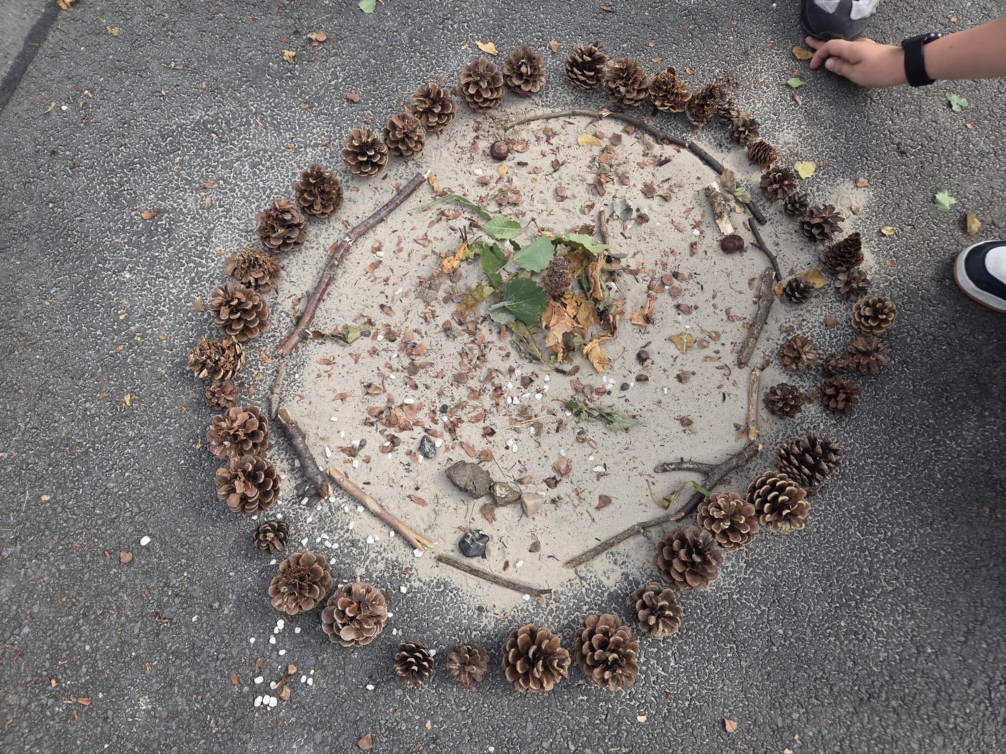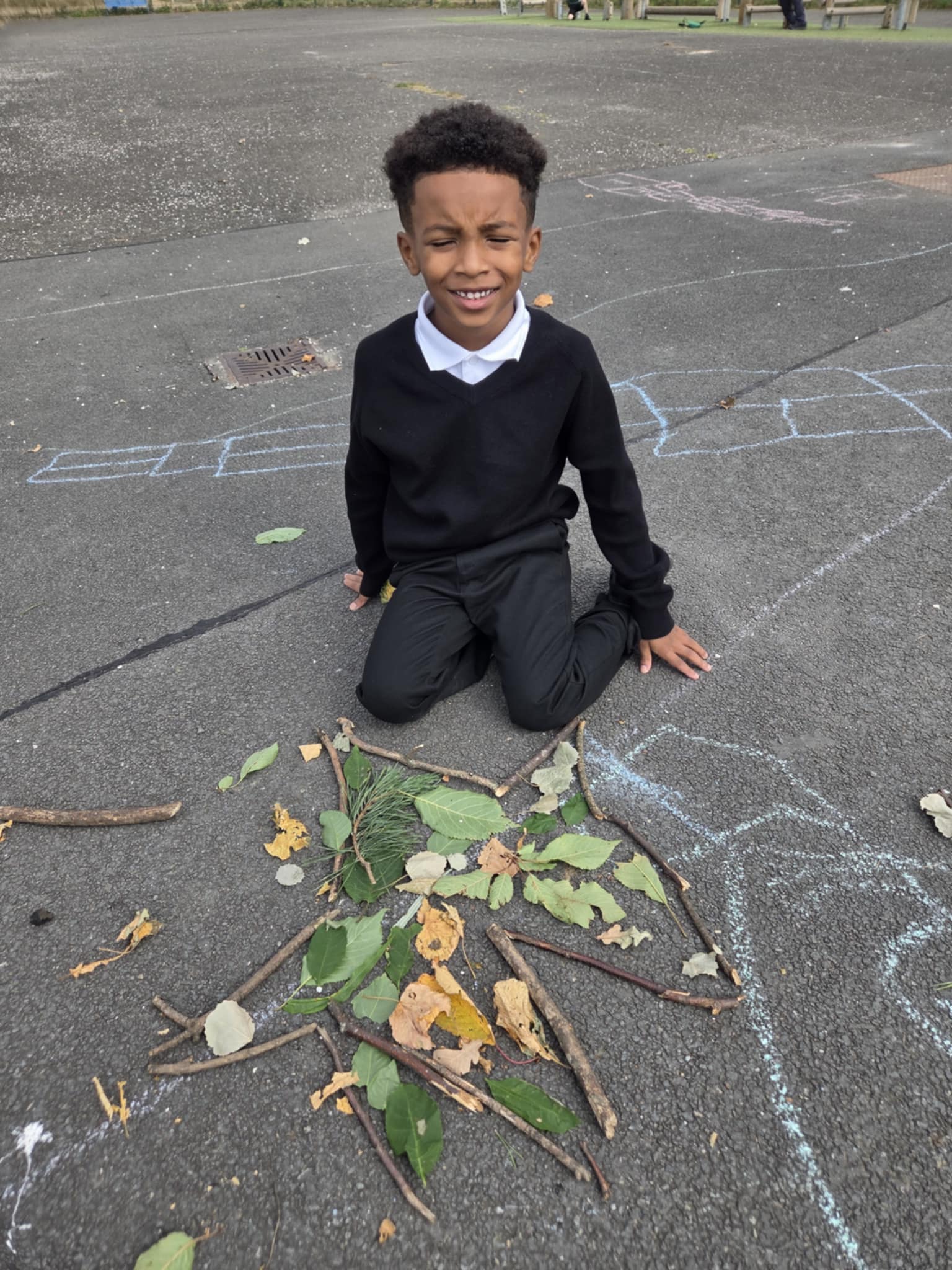 We are enjoying an art topic about different artists that use nature within their work. Andy Goldsworthy is famous for his extraordinary work with natural materials. In a few weeks we will be visiting his exhibition in Edinburgh and we are very excited to see his work in real life. So, until then, we had a go at making our our art inspired by his work. We focused on swirls, circles, patterns, colour and different materials that we found in the playground.