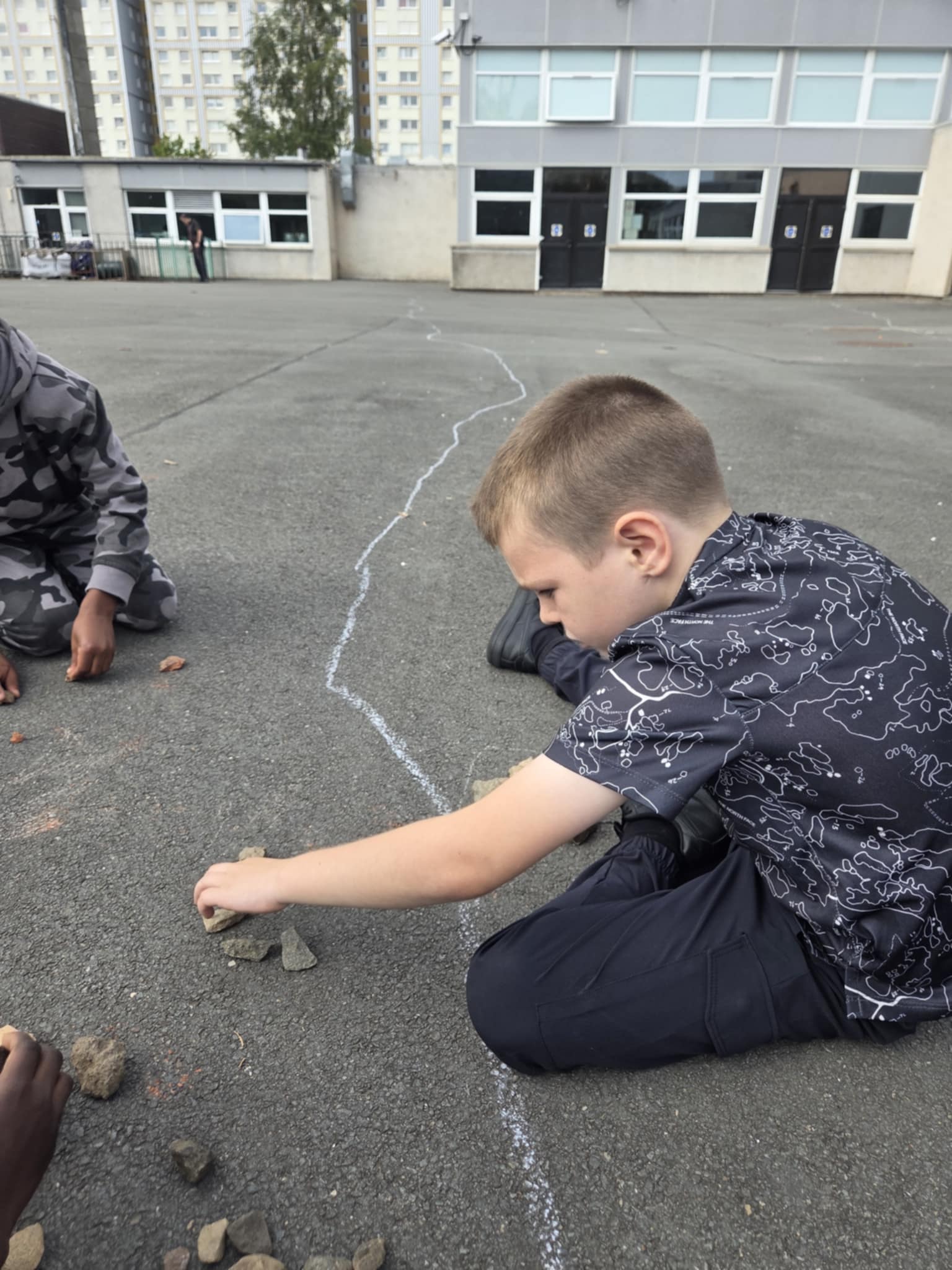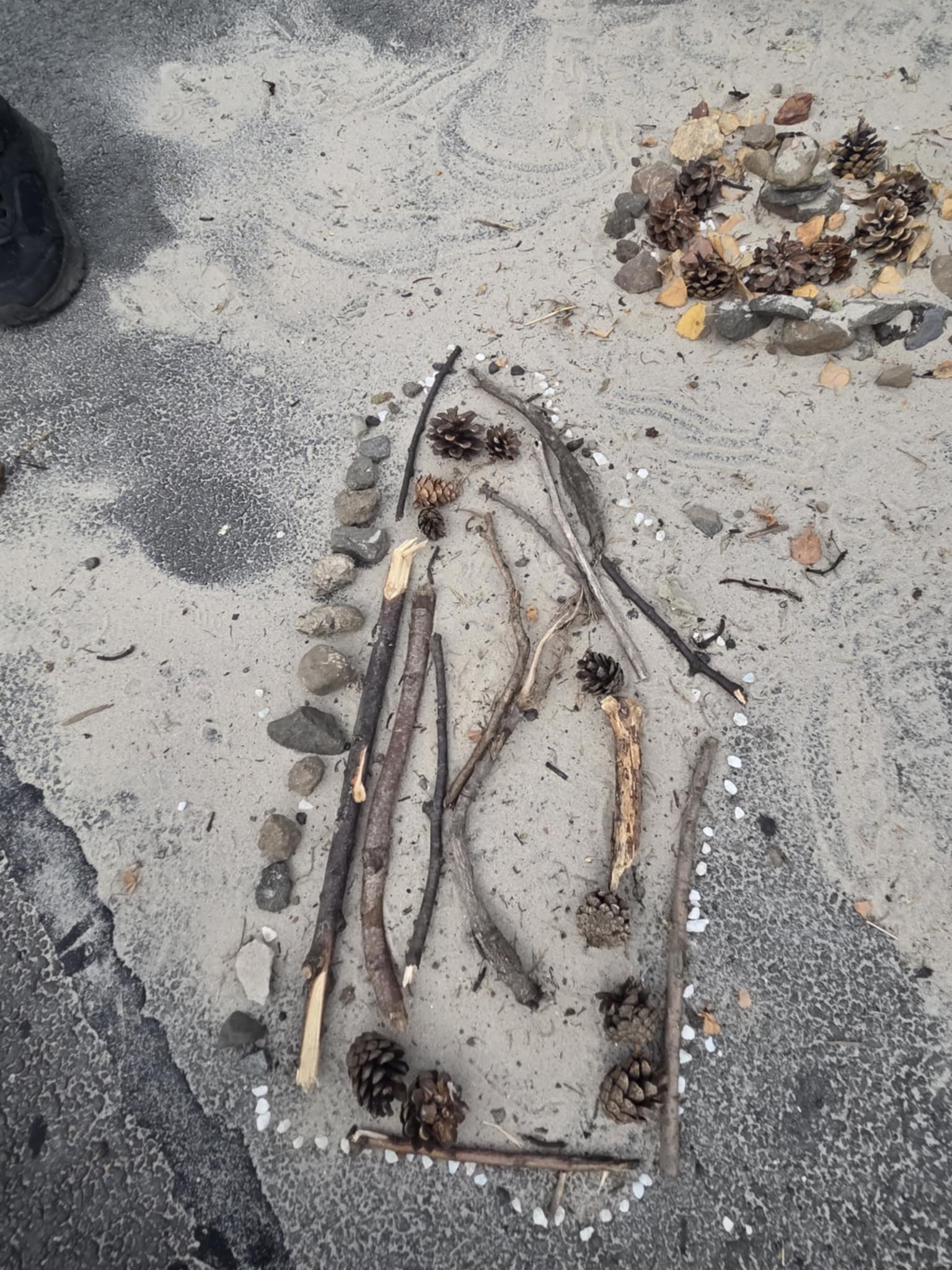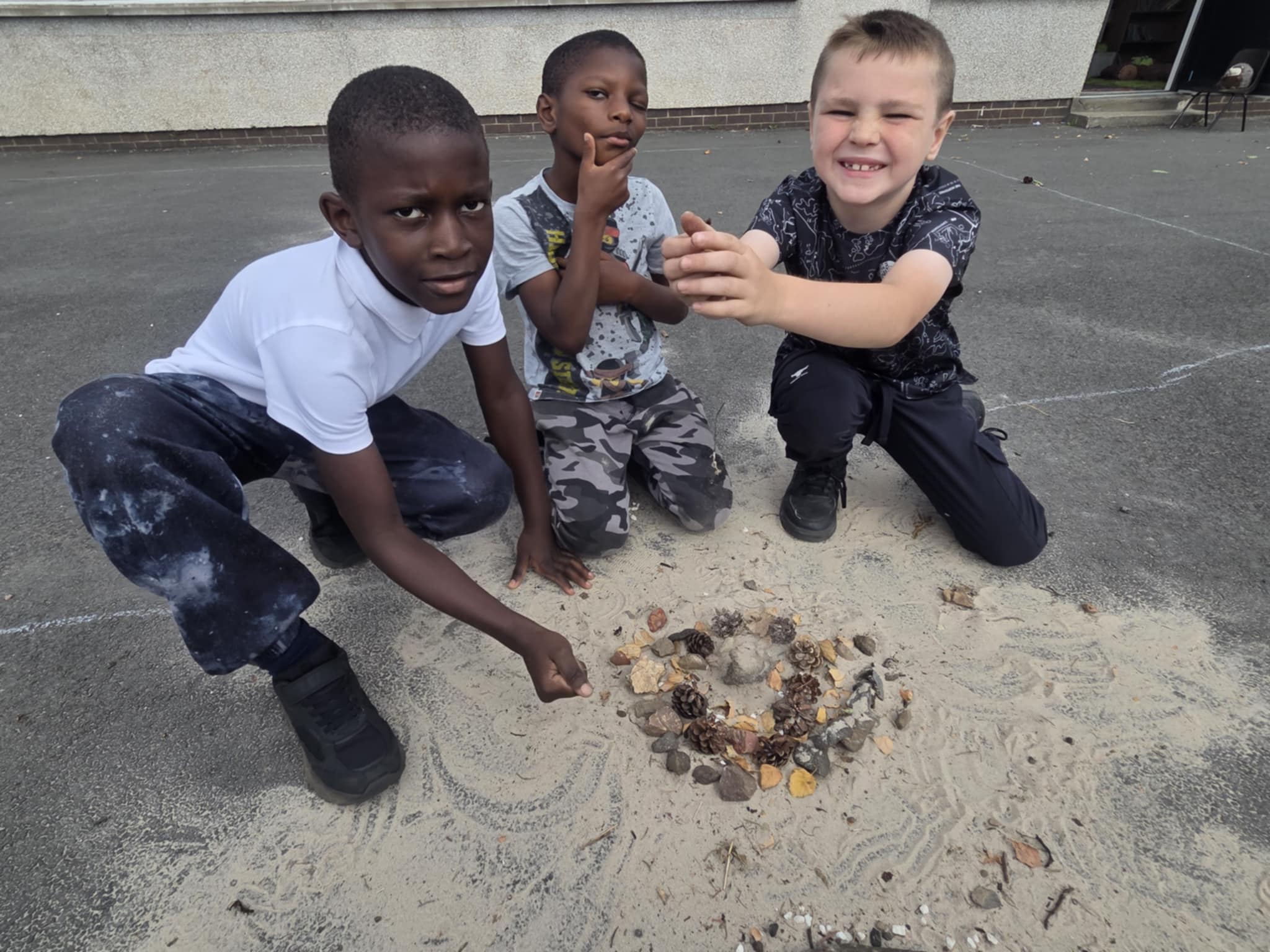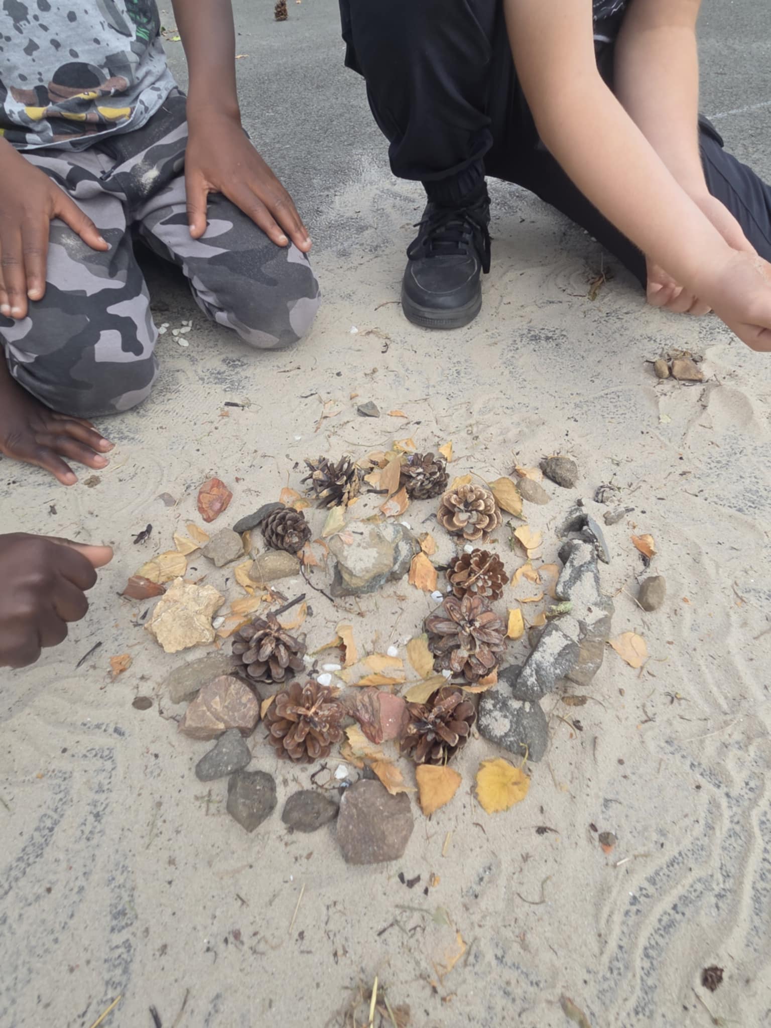 We are enjoying an art topic about different artists that use nature within their work. Andy Goldsworthy is famous for his extraordinary work with natural materials. In a few weeks we will be visiting his exhibition in Edinburgh and we are very excited to see his work in real life. So, until then, we had a go at making our our art inspired by his work. We focused on swirls, circles, patterns, colour and different materials that we found in the playground.