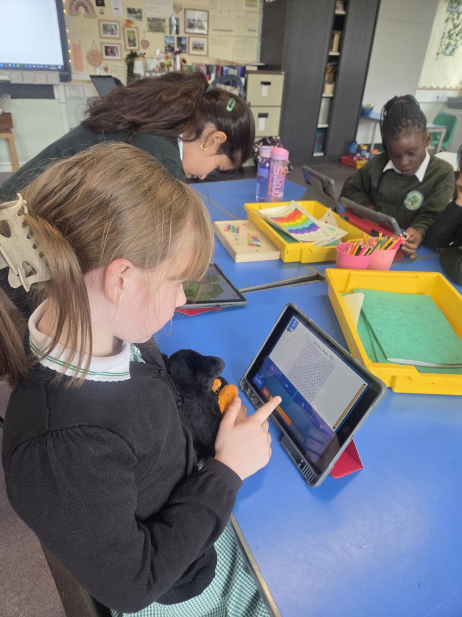 We are very lucky to have lots of iPads in the class this year. The children are able to log themselves onto devices and play different literacy or numeracy games. This is a great resource to enhance independent learning.