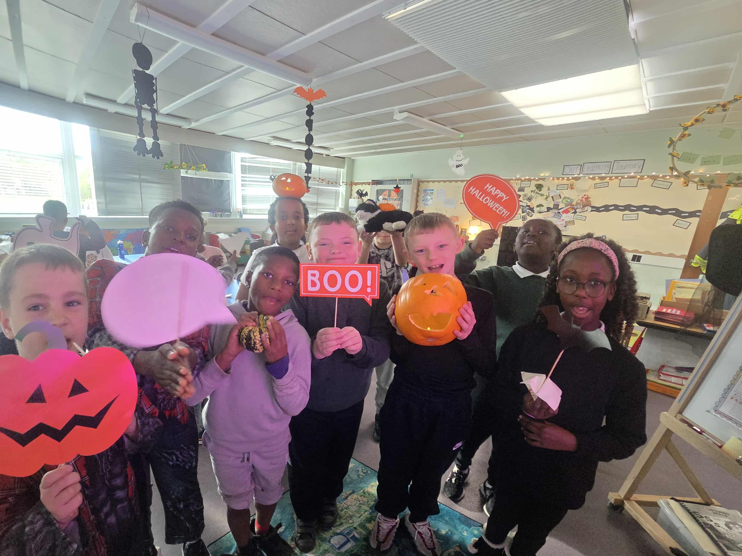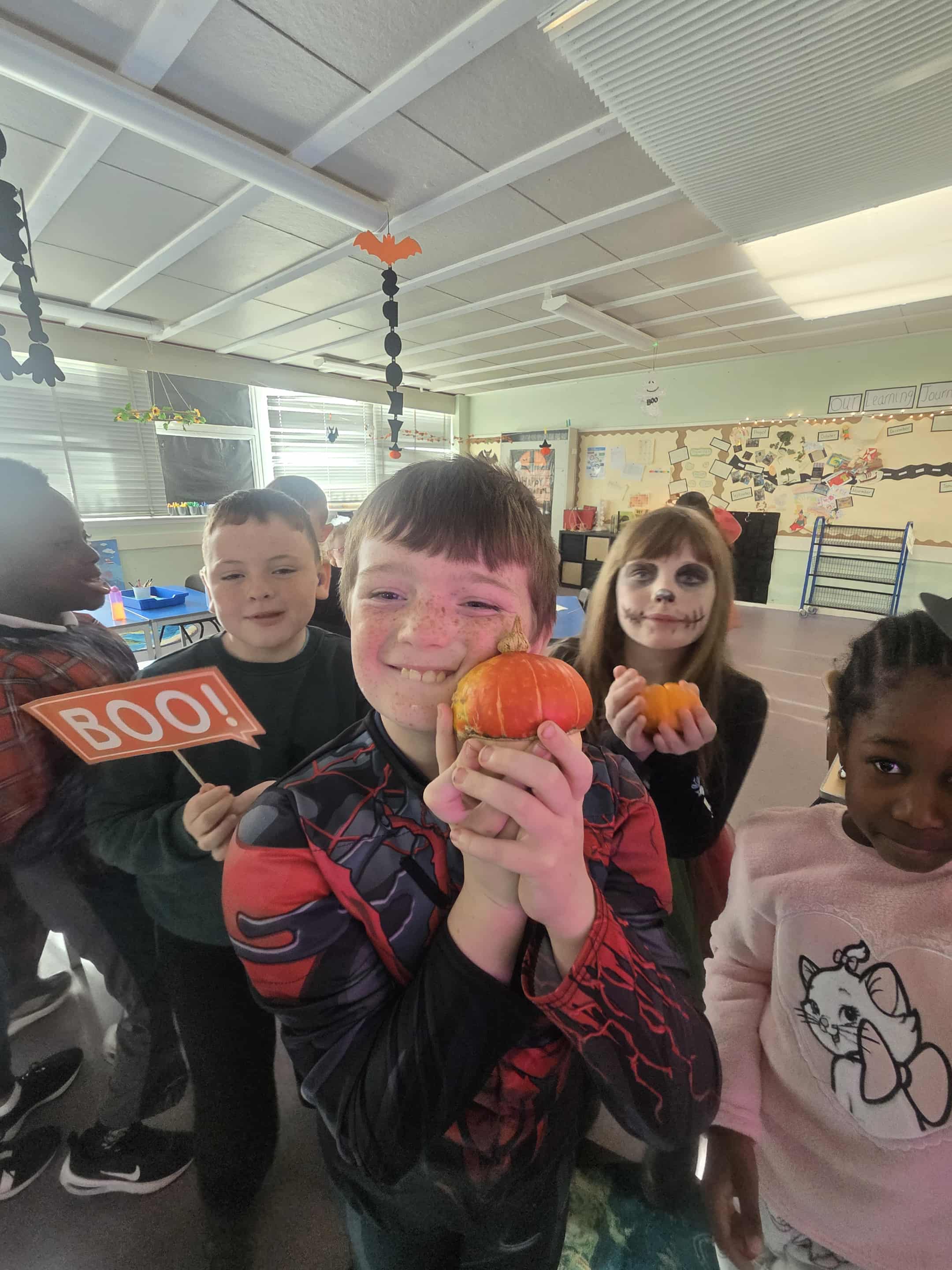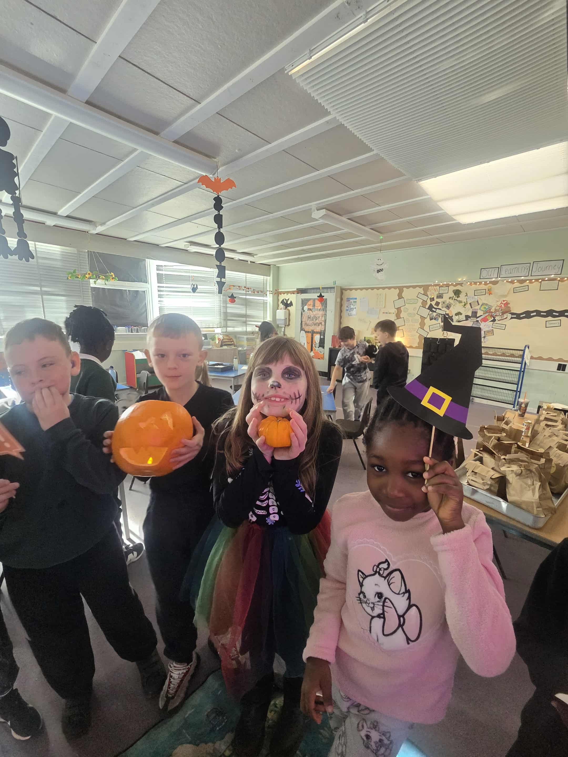 We had a great morning today celebrating all things spooky and autumnal. We carved pumpkins, iced biscuits, ate cake, watched a Halloween cartoon and did some Trick or Treating for our classmates. Lots of funny jokes were told.