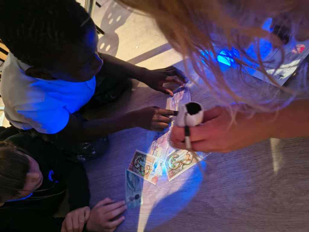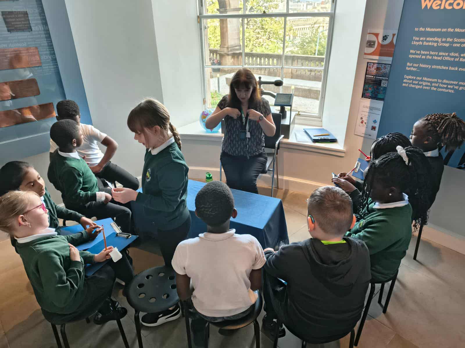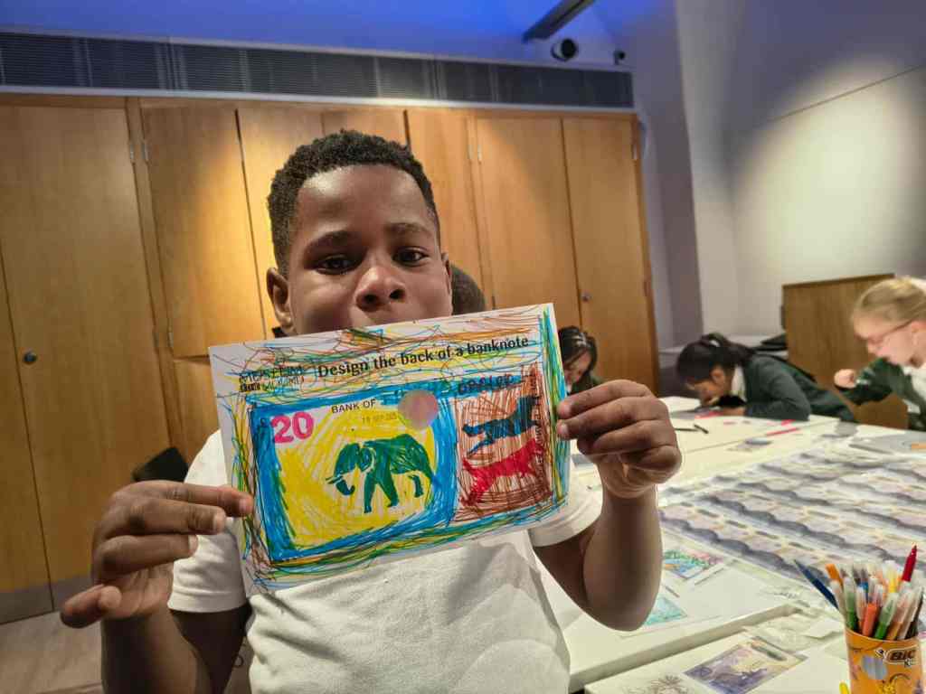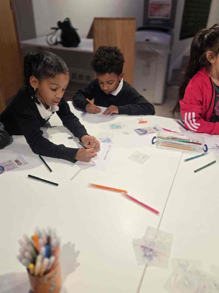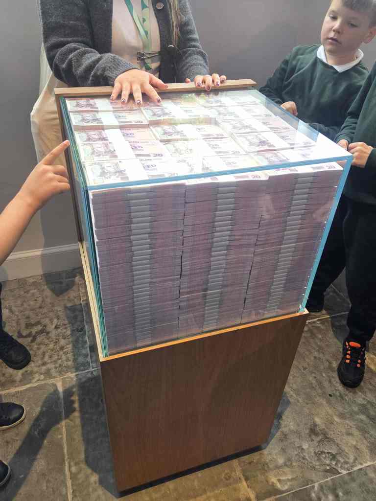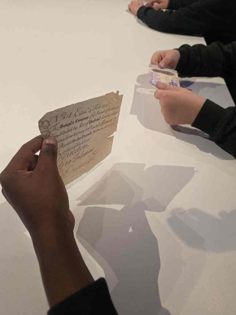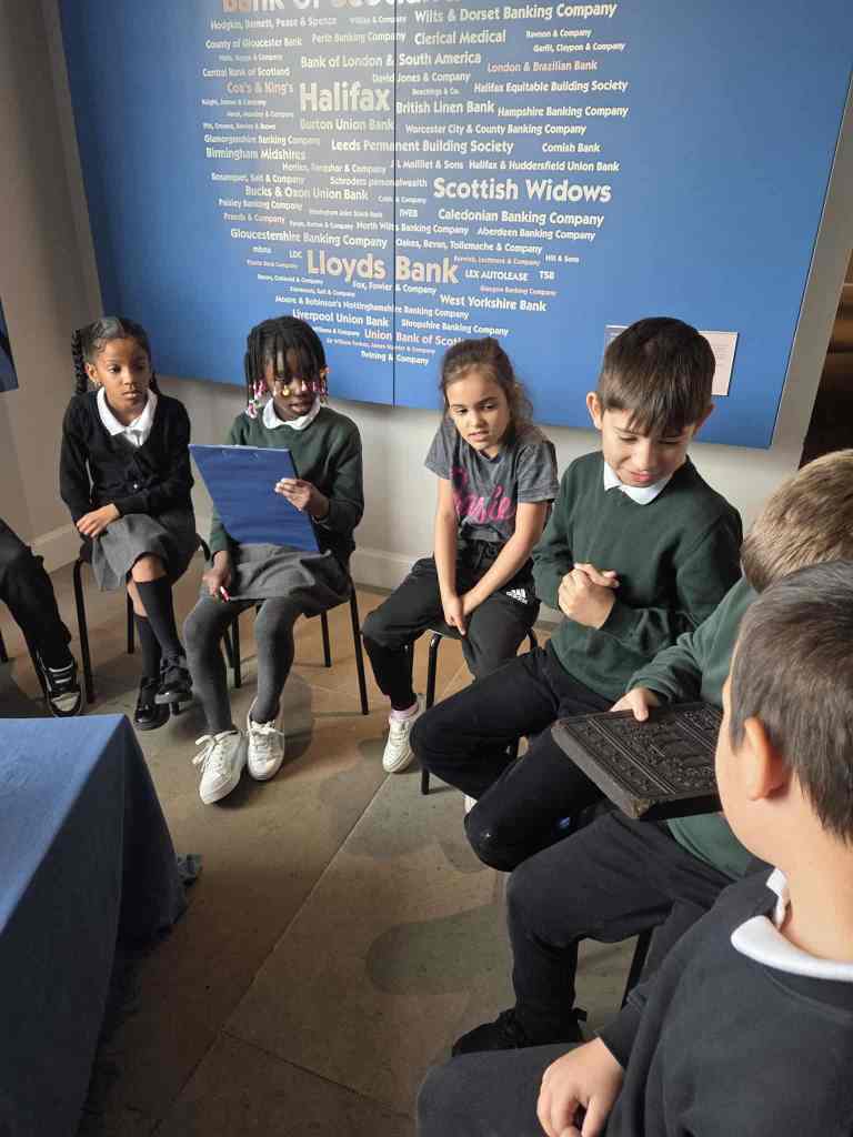 We have enjoyed learning about money in the classroom and we were lucky enough to get to visit the Museum on the Mound. We had 3 fantastic workshops – 1. Design a banknote, 2. How money was stored in the olden days and 3. What was used as money in the olden days.