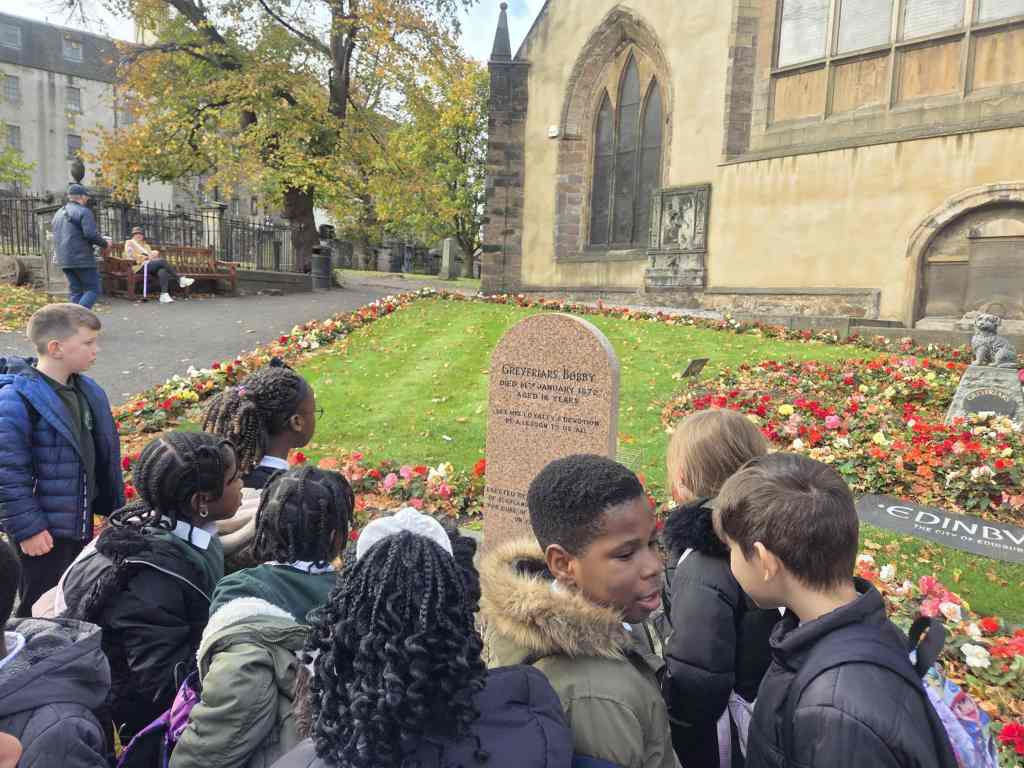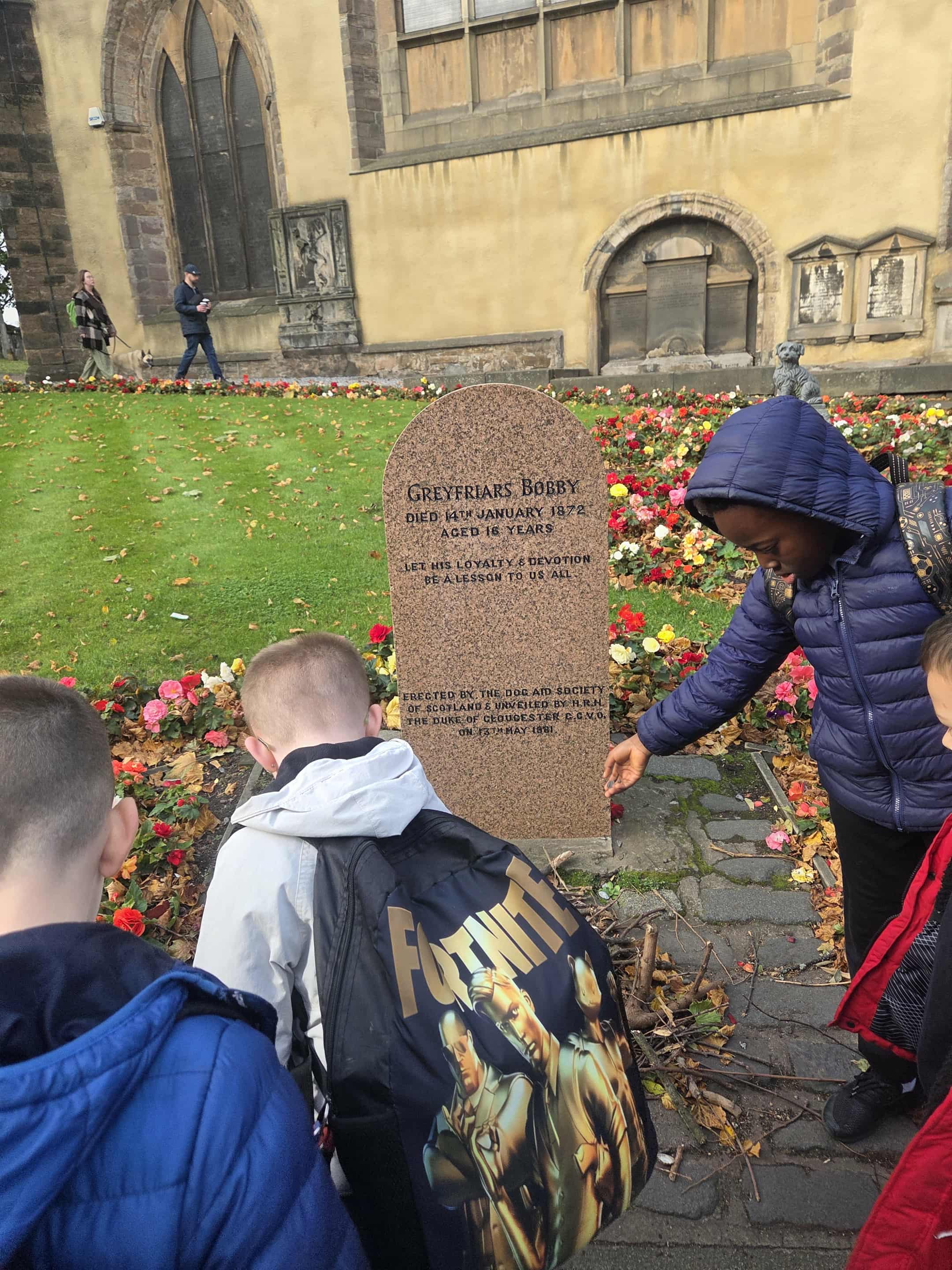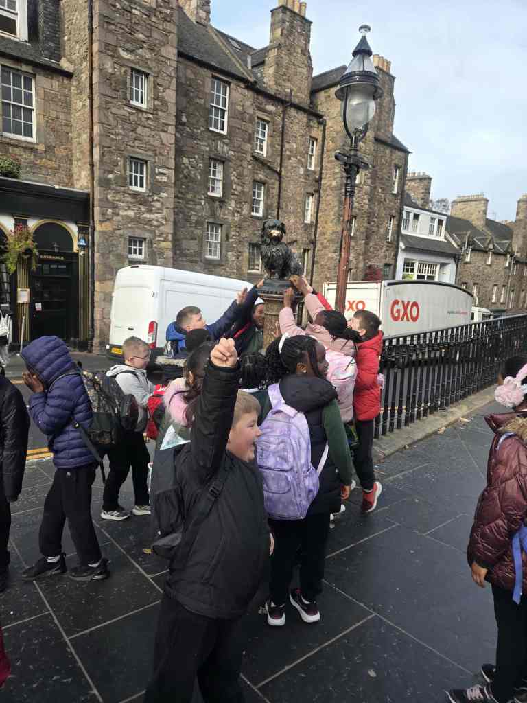 Before we went to the Museum, we had time to visit Greyfriars Bobby – we had been wanting to do this for a while. We even visited his grave and laid some sticks on it. We had a great day and the children were incredibly engaged and were great representatives of the school.