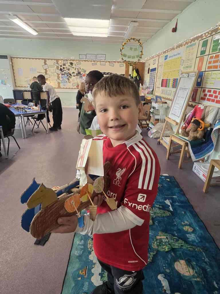 Learning how to be creative through the art of puppet making. We are continuing to create fact files about toys and games. Today’s was all about puppets. We learnt that puppets have existed for around 4000 years!