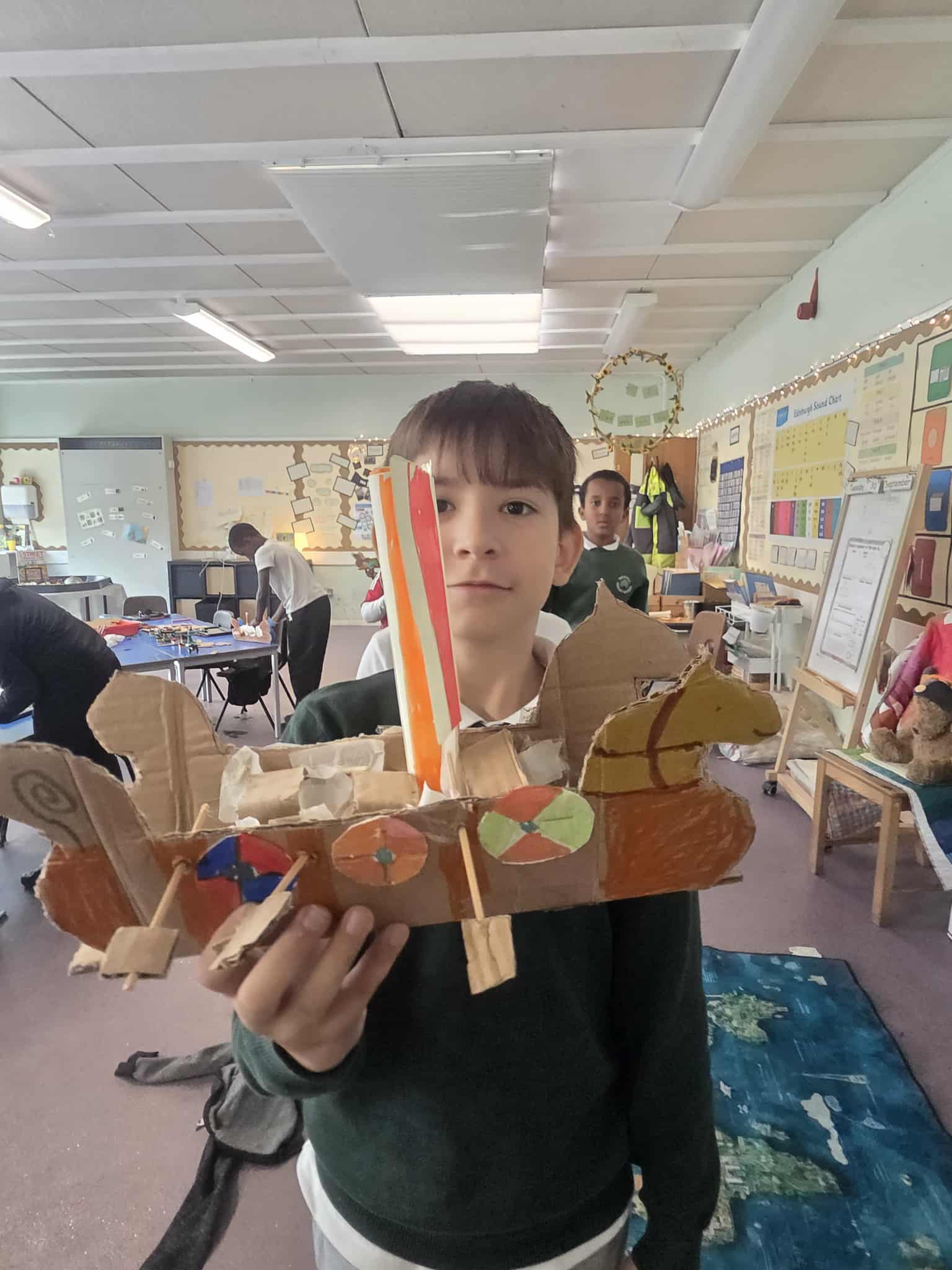 We had lots of adults come to join us with our learning. We were cutting out cardboard templates to make our Viking Longships – so the extra help was very much appreciated. We are loving learning about Vikings and can’t wait to make our Longships.