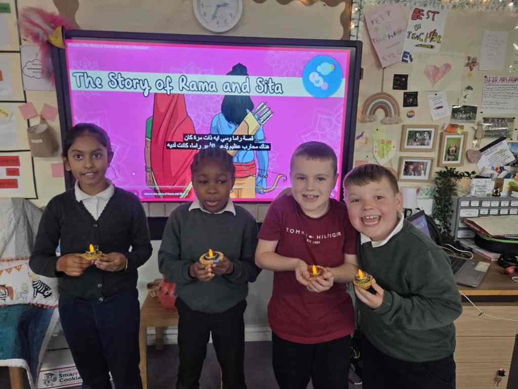 We have been learning about Diwali. We learnt why Diya’s are used and all about the story of Rama and Sita. We ended the afternoon with a fun lesson on Diwali dancing – it was great fun.