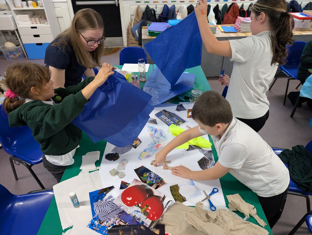 Students from the University of Edinburgh taught our pupils a wide range of art styles, including chalk rubbings, self portraits, abstract creations and collaborative collages.