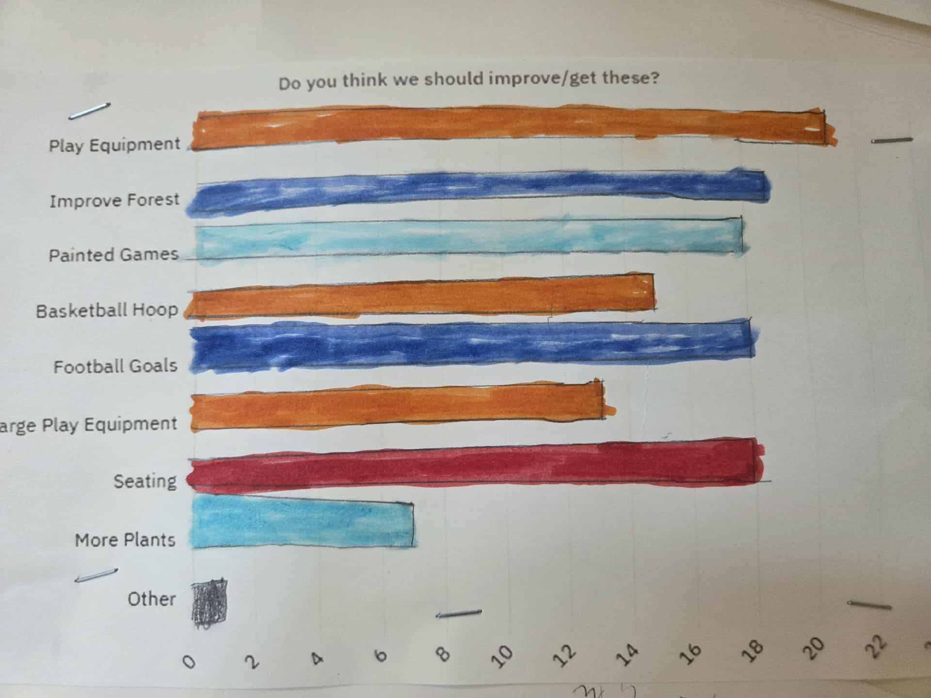 We discussed our new Meta skill for this month which is Creativity – this means we use our wonderful imaginations to create and solve problems. In our second meeting we looked at data collected from whole school playground questionnaires and we discussed the findings. Some of our older group members used the data to create bar graphs. Everyone used their imaginations to create a drawing of their dream playground. Popular opinion is that we will get some painted games on the playground – the group realised how expensive this can be and budgeted accordingly using our playground improvement fund. Exciting times ahead!!