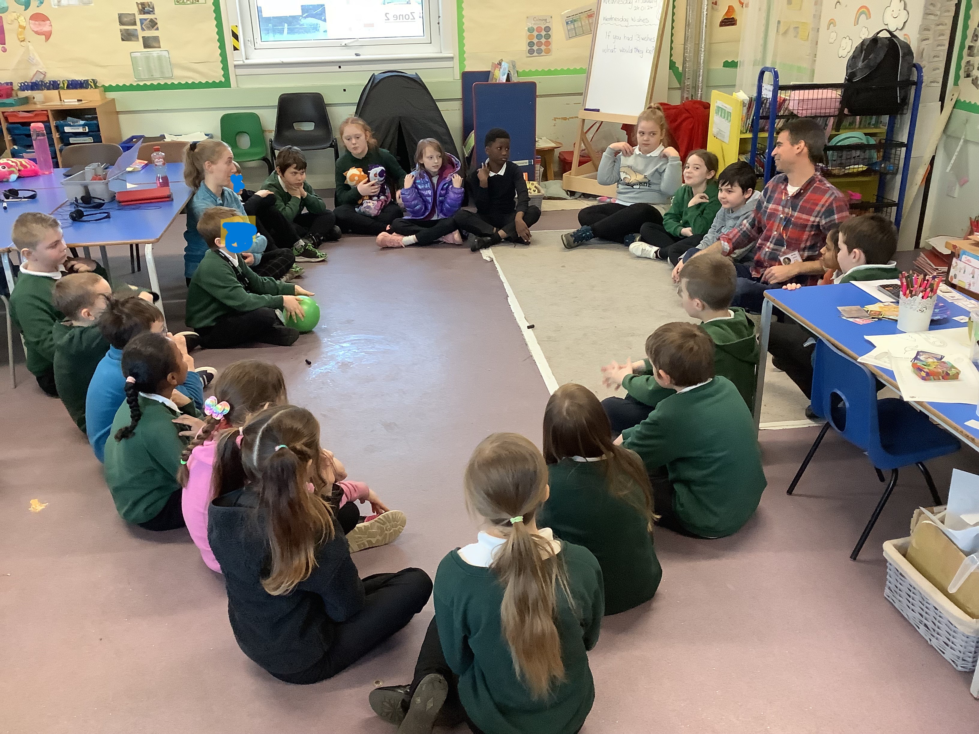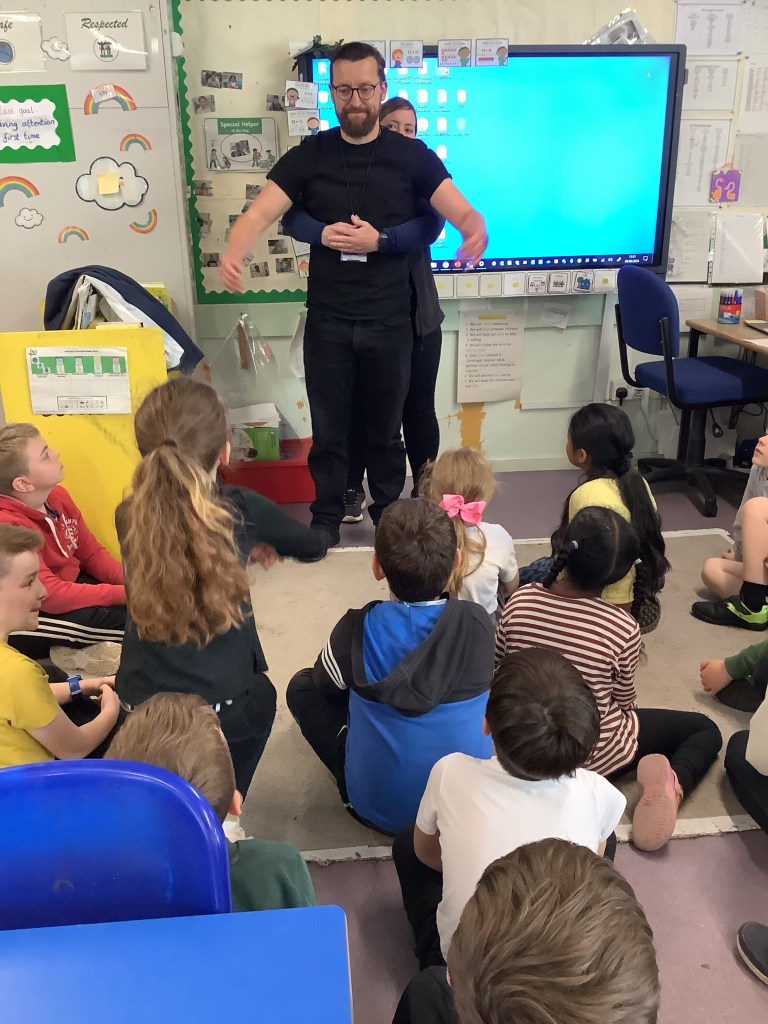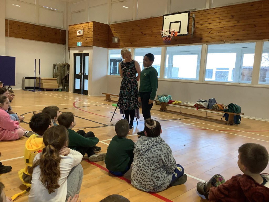 On Wednesday 6th March, as part of World Book Week, storyteller Claire McNicoll came to visit the school and P4 got to attend one of her storytelling and song sessions!! We had great fun listening to the story about a selkie and creating our own versions of Aiken Drum from a song!