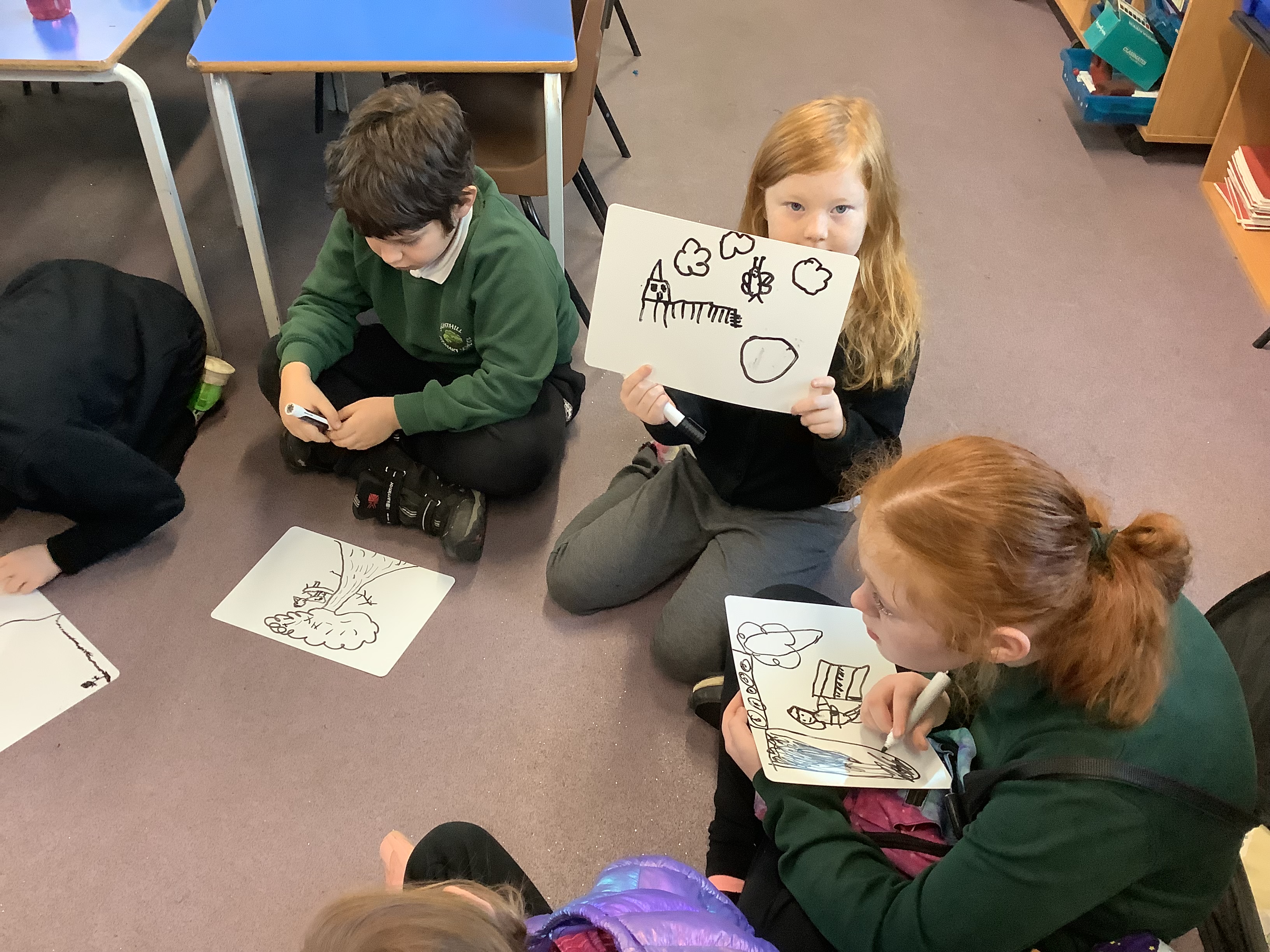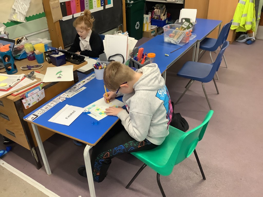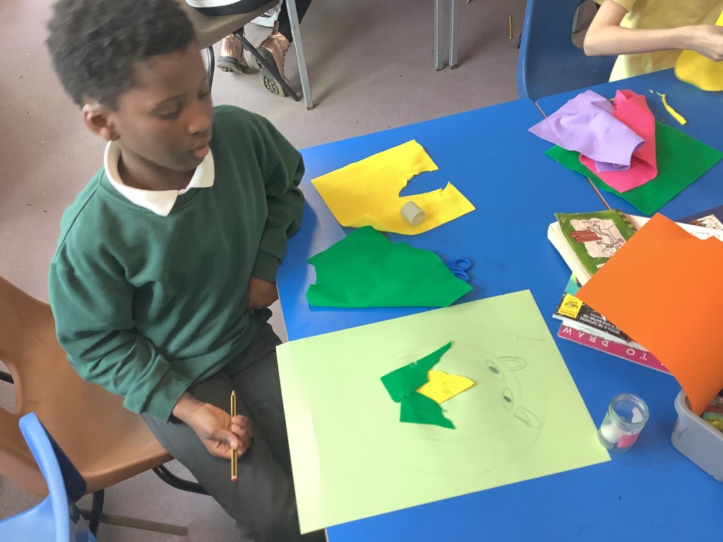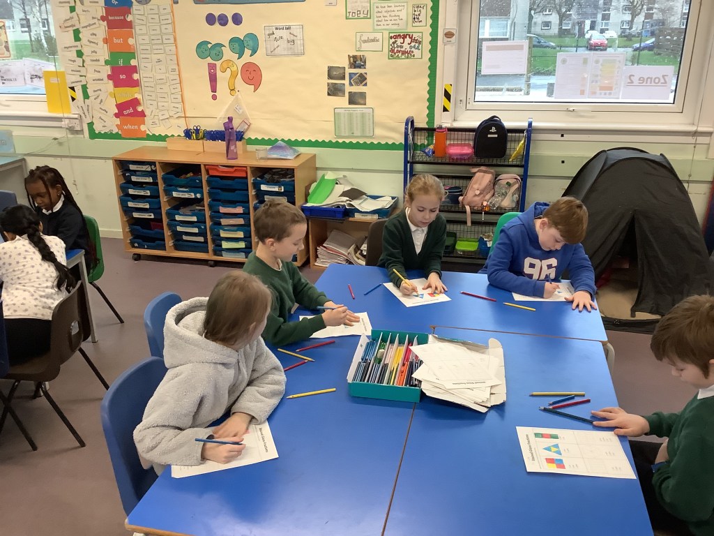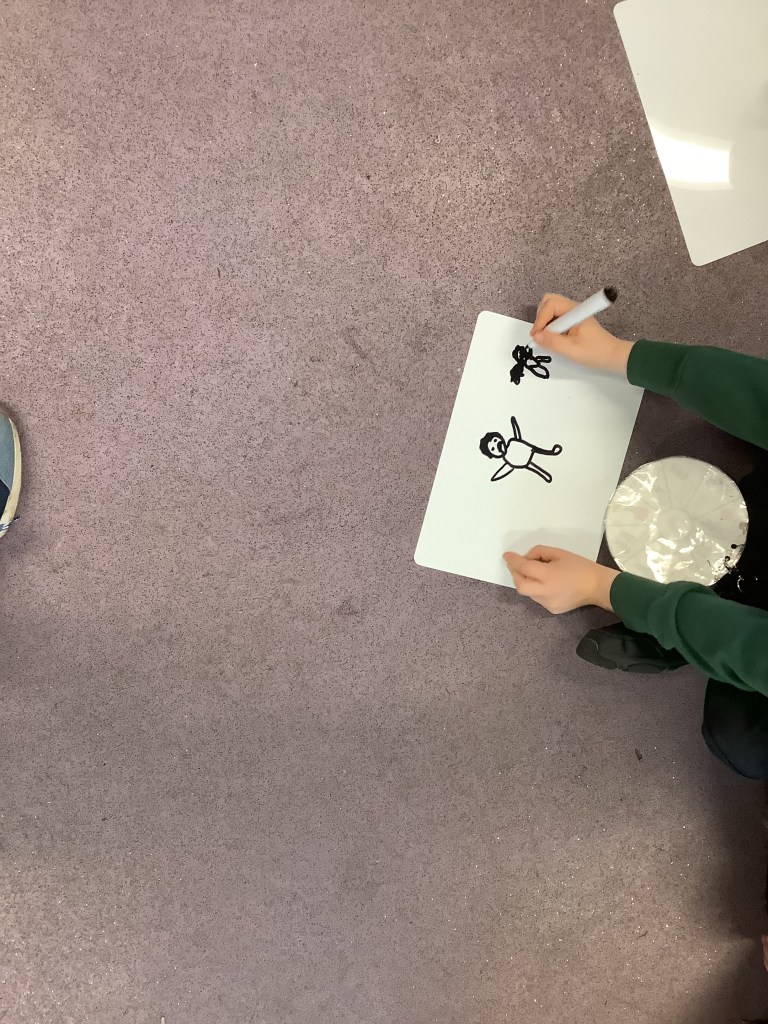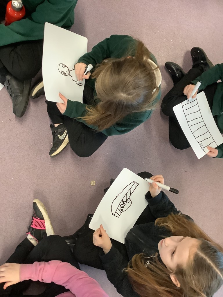 Every Wednesday we are lucky enough to take part in Big Noise sessions. We started these in Primary 3 and have been progressing our skills since then. We play instruments, read music notes, work with beats and rhythms and join in with lots of singing and clapping patterns. Here are some recent pictures where we were listening to a piece of music and had to draw what we were imaging in our head as we heard it. The results were lovely 🙂