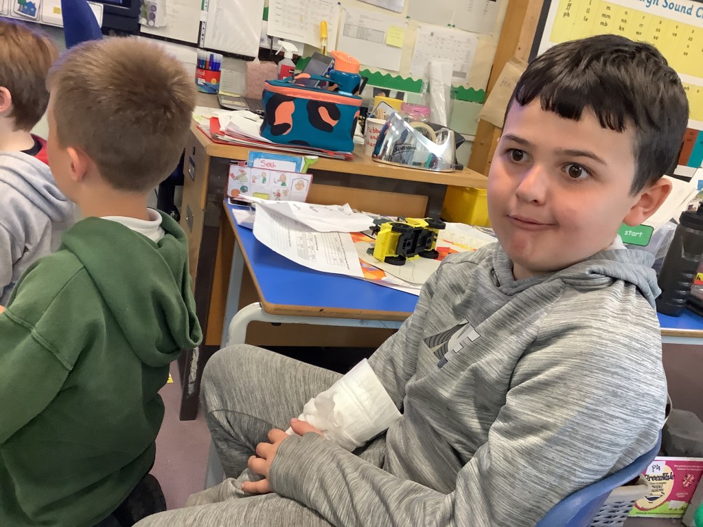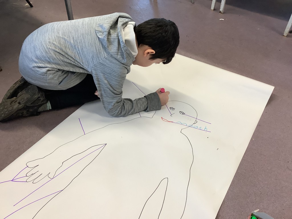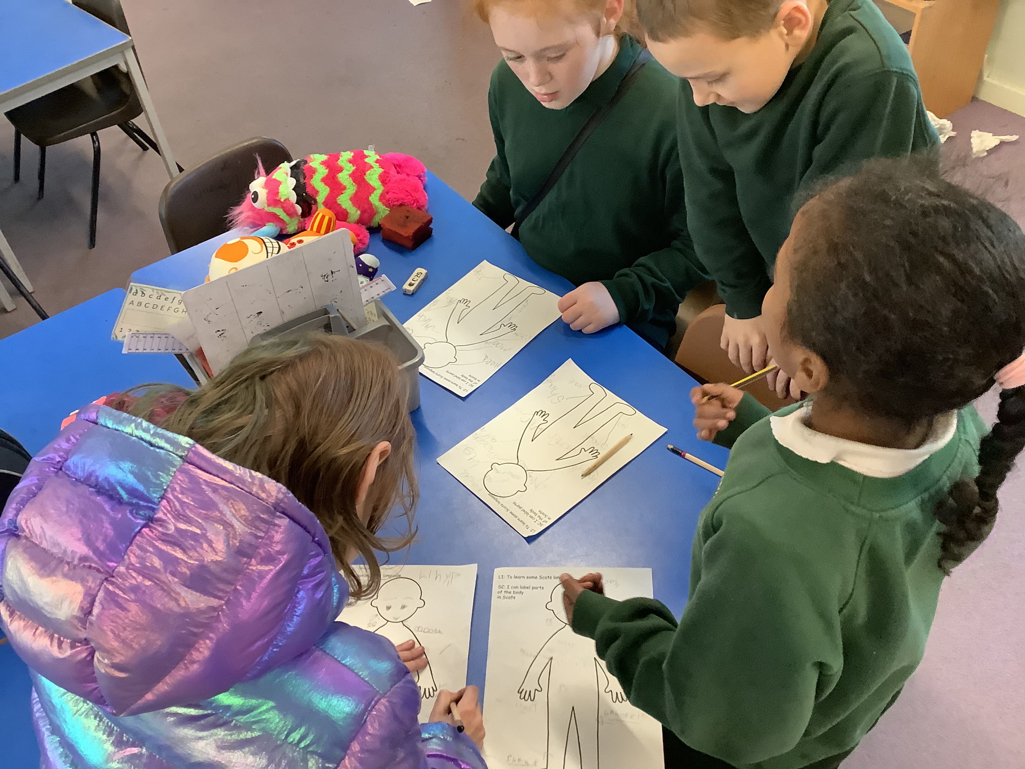 Our topic for January and February is “Scots Language”. Through this we are exploring different Scot’s words, poems and learning about some famous Scottish people. Here are some pictures of us learning the names for some body parts in Scots. We had to go on a hunt around the classroom to find the names!