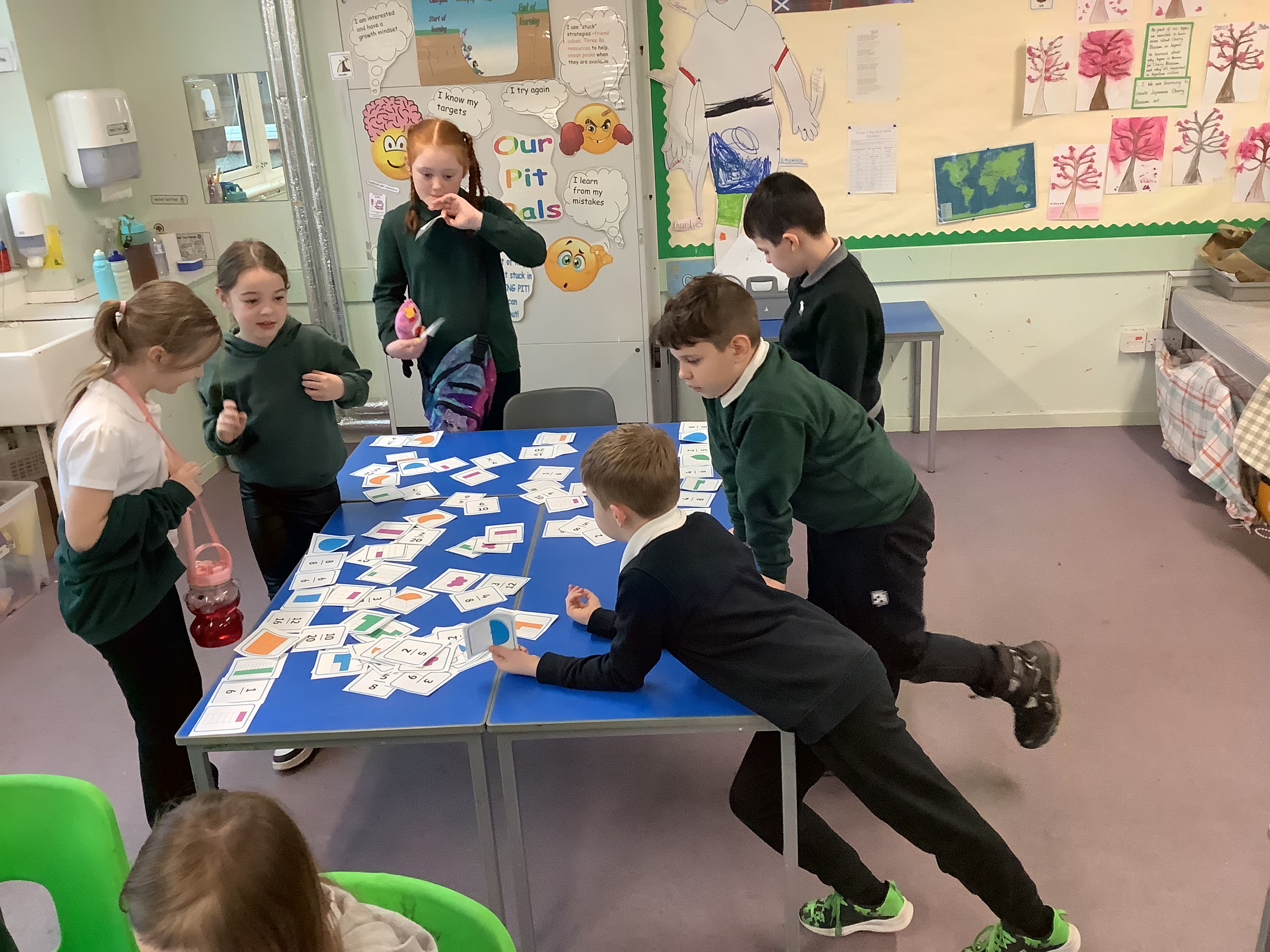 Since coming back from the February break we have been learning about Fractions. We have been learning to identify them and make our own fractions through playdoh, colouring, cutting and using ICT. We are learning that the denominator (the bottom number) tells us how many “bits” something has been cut in to and the numerator (the top number) tells us how many “bits” we have of it. Here are some pictures of us taking part in different fraction related activities.