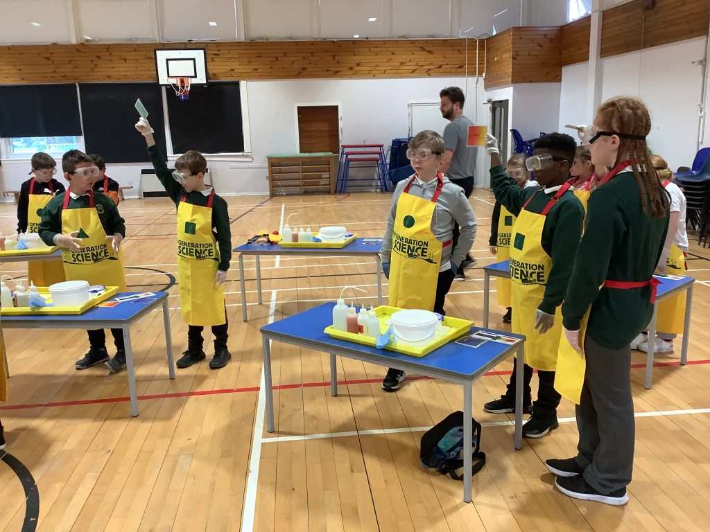 Primary 4 were visited by the amazing team and Generation Science on Monday 22nd April! We came became scientists for the morning and took part in a range of experiments. We learned about chemical reactions and how acidic or alkali something is. We experimented with a range of heat, light, gas and colour changes! Fun was had by all!!!