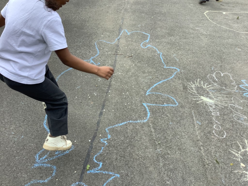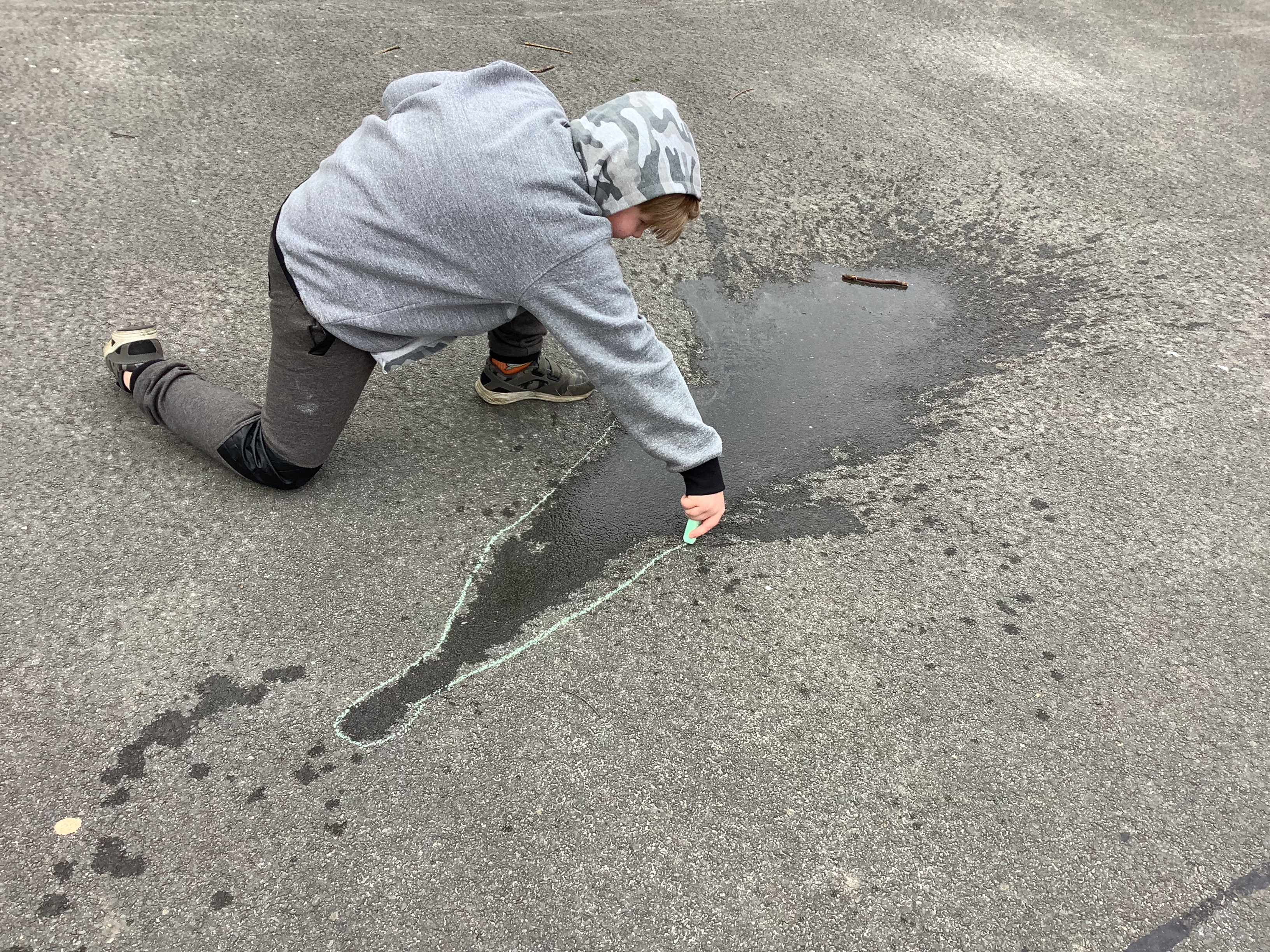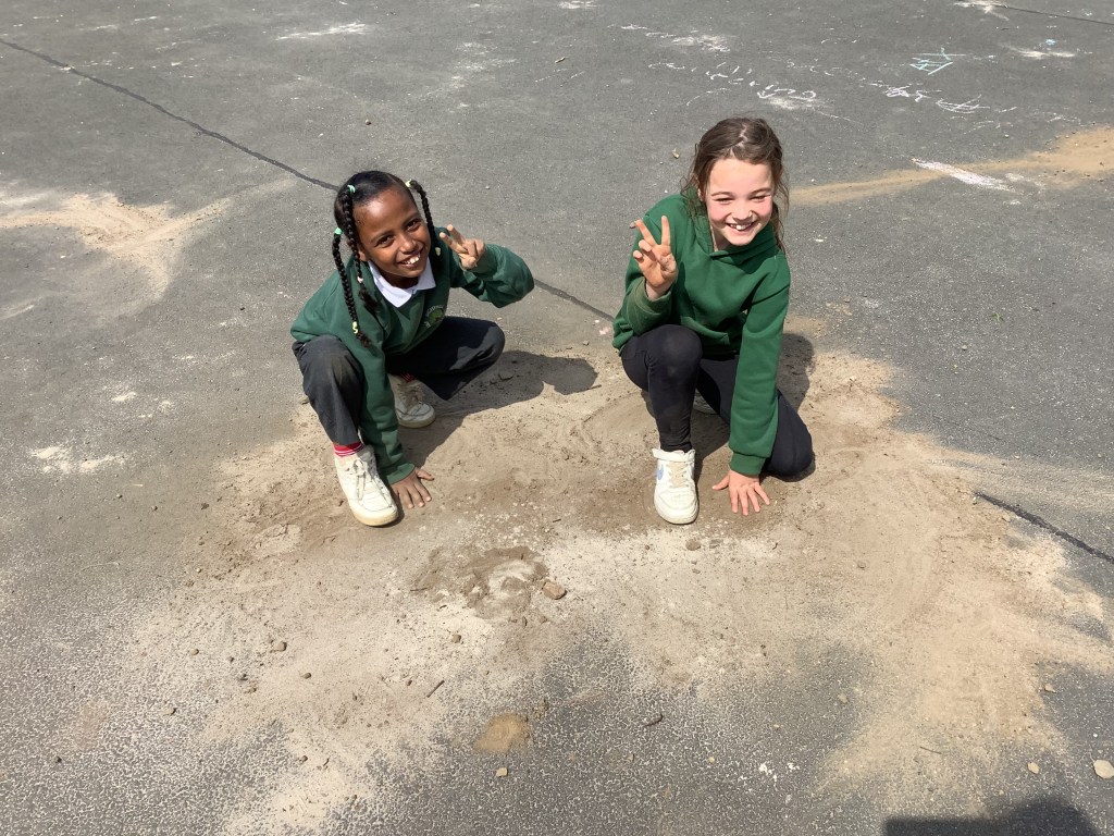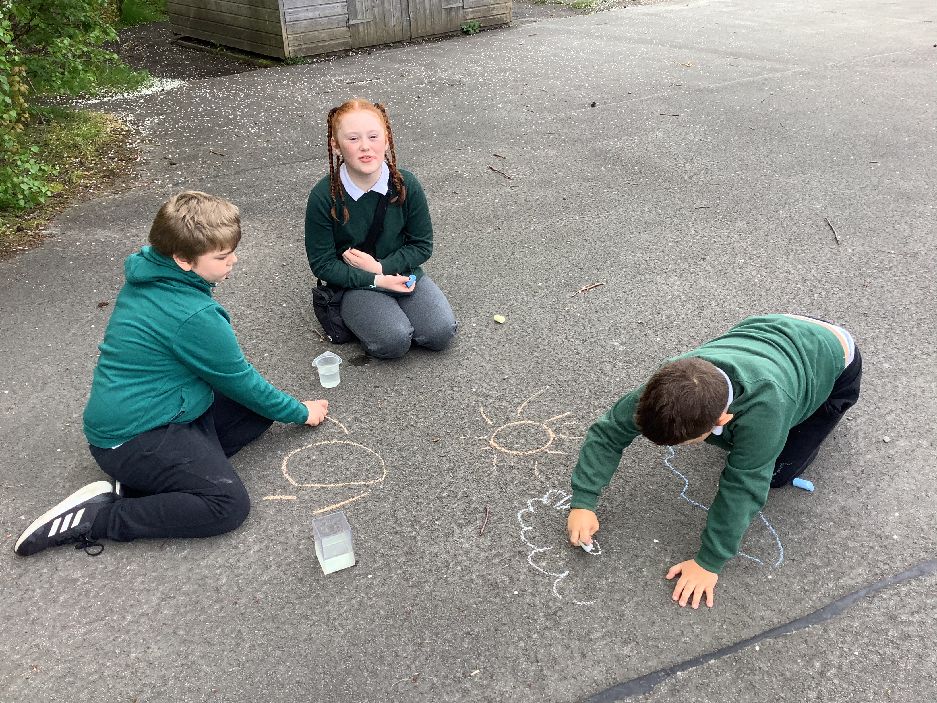 In Term 4, we have been learning about The Water Cycle. We have experimented with creating puddles outside and chalked around the outside of them to mark how big they were. We then waited a few hours and found that the majority had evaporated!