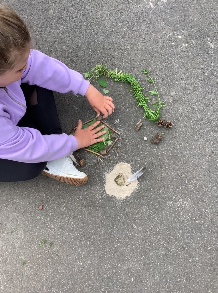 On 21st May for Art, we explored the work of Andy Goldsworthy. We learned how he is an environmentalist and wants people to see the beauty of nature that is around them. We looked at some of his work and then had a chance to create our own. Have a look at the amazing results below!!